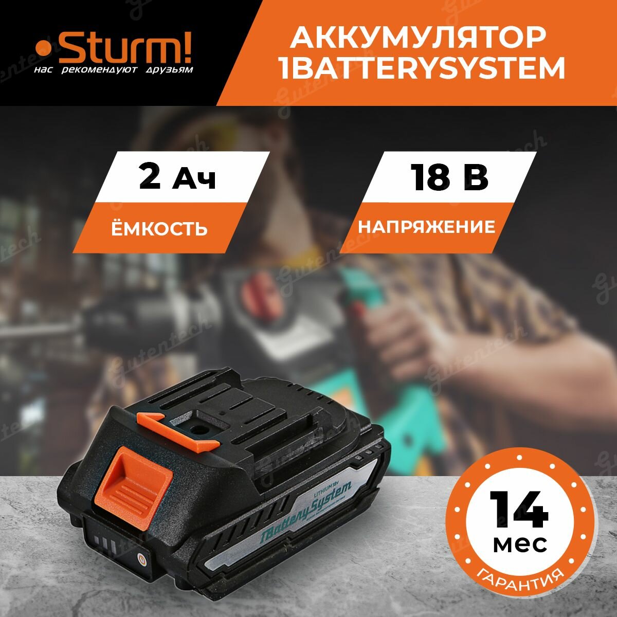 Аккумулятор 18В, 2А/ч, 1BatterySystem Sturm SBP1802