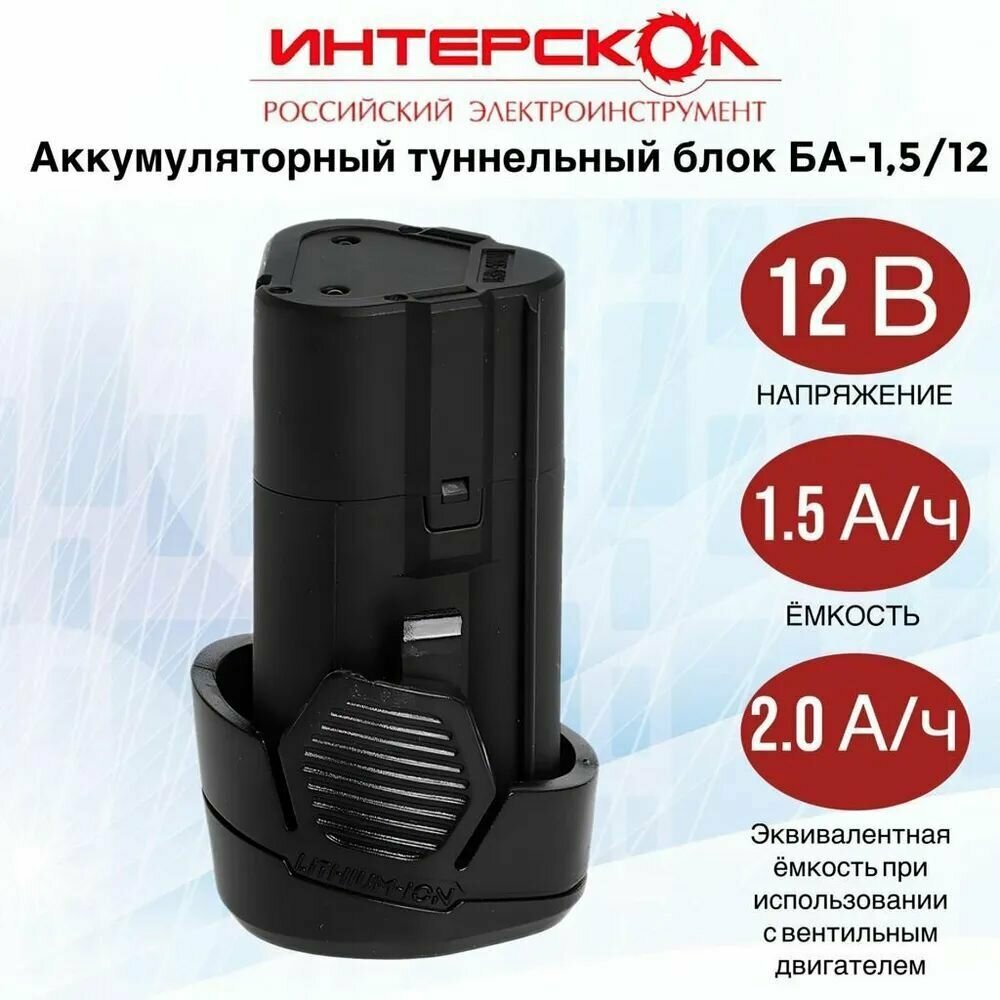 Батарея аккумуляторная Интерскол БА-1.5/12 12В 1.5Ач Li-Ion (2400.011) интересное: