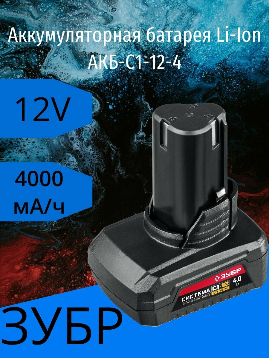 Купить ЗУБР Li-Ion, 12В, 4 Ач, тип С1, аккумуляторная батарея АКБ-С1-12-4