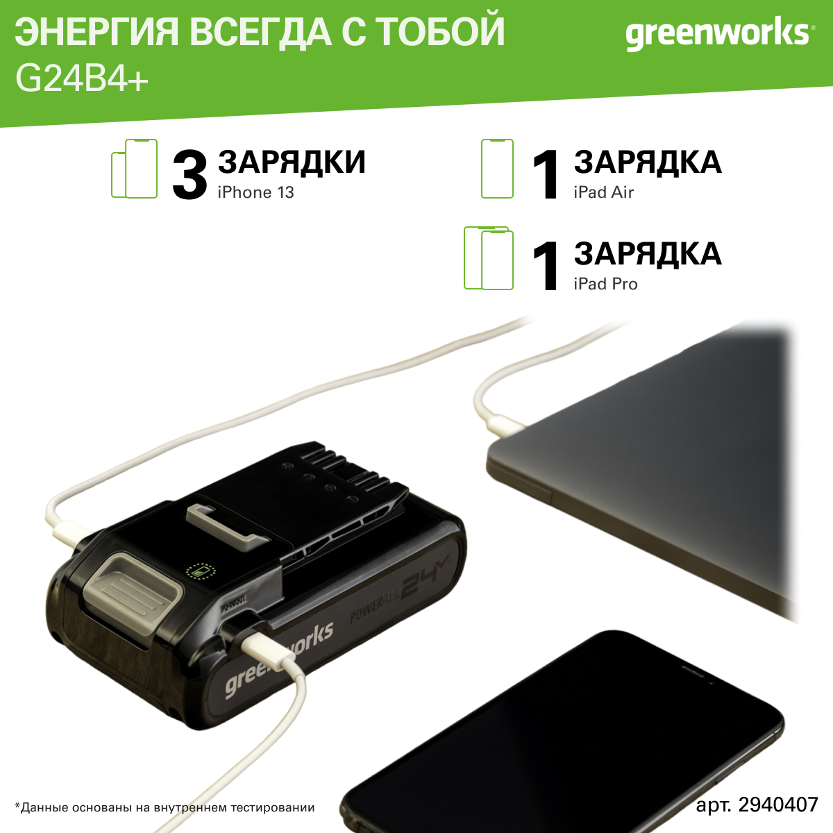 Аккумулятор Greenworks Арт. 2940407, 24V, 4Ач, с двумя USB-C разъемами интересное: