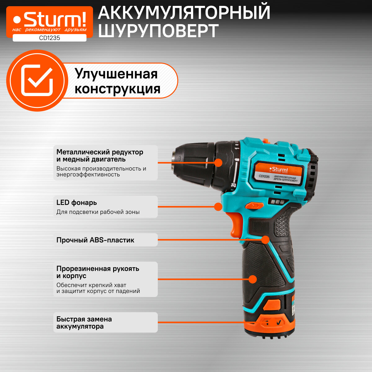 Купить Аккумуляторный шуруповерт Sturm! CD1235 1BatterySystem12V