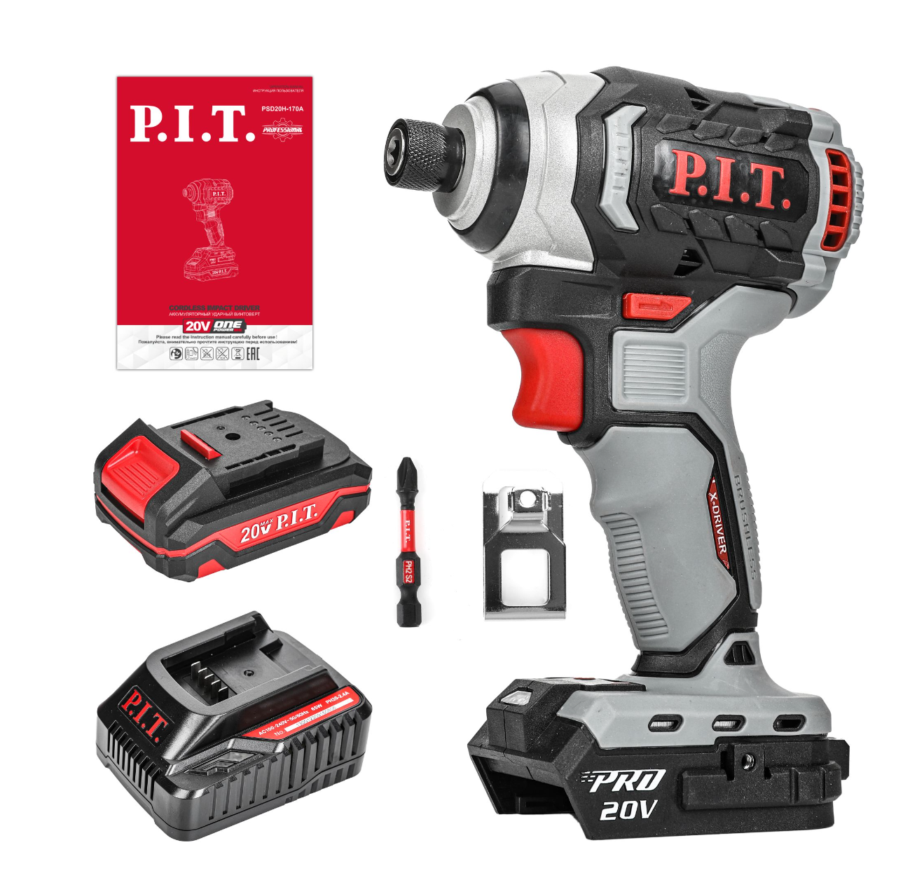 Купить Винтоверт IMPACT аккум. бесщёточный P.I.T. PSD20H-170A/1 (20В, 170Нм, 3ск, 1 акб 2Ач, ЗУ, HEX ")