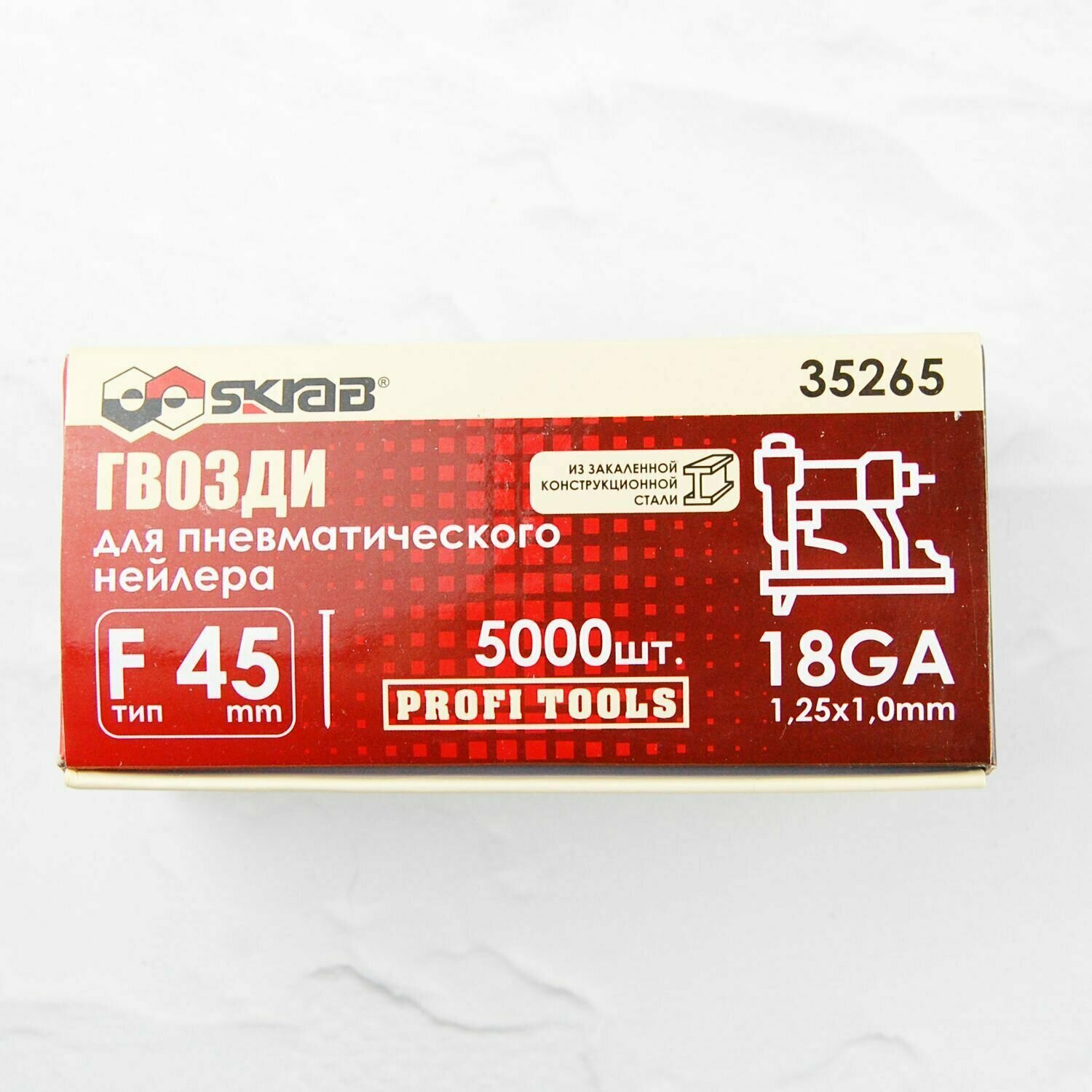 Гвозди для пневматического нейлера F45 мм 18GA 1,25х1,0 мм 5000шт Skrab 35265
