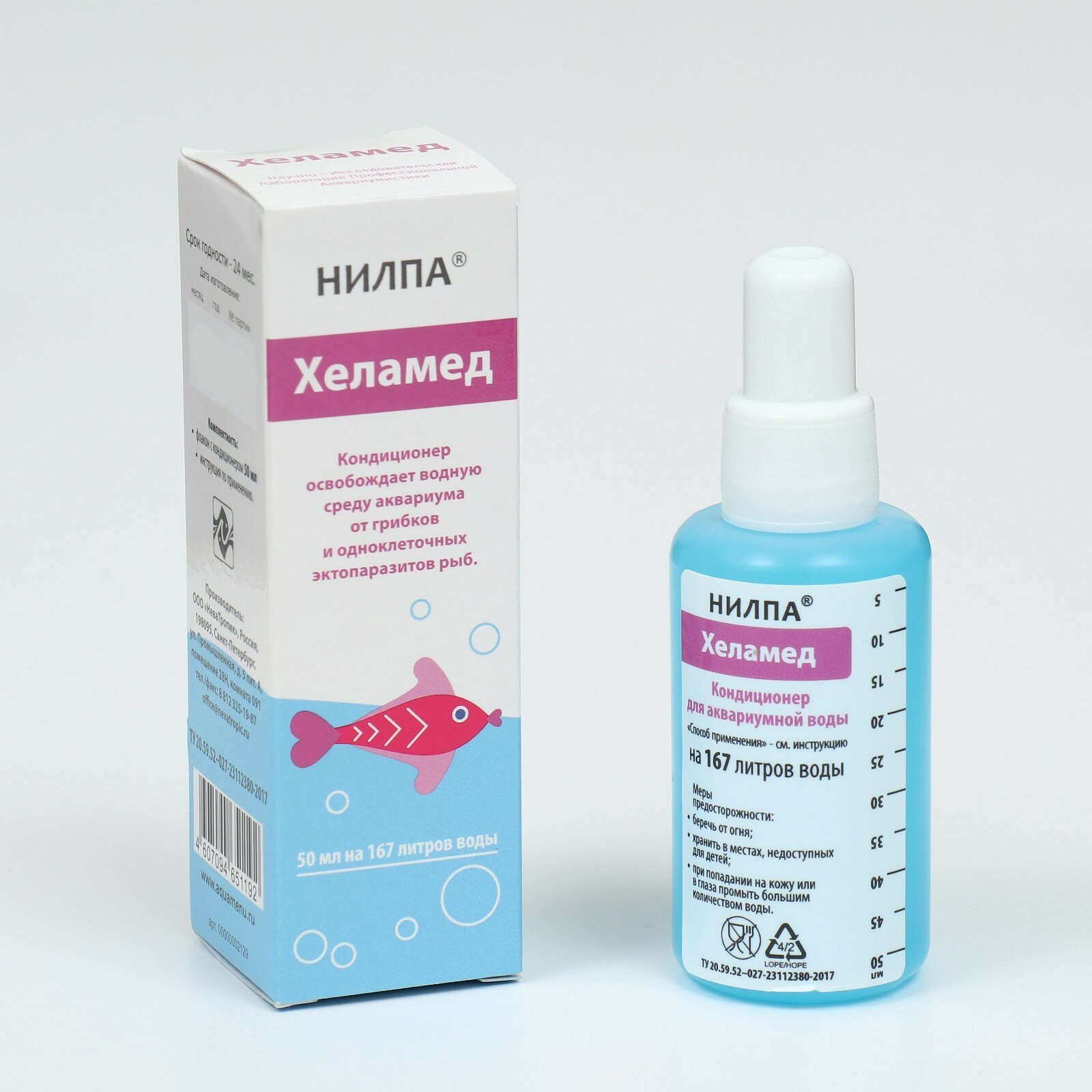 Кондиционер нилпа Хеламед 50мл, освобождающий водную среду аквариума от грибков и одноклеточ