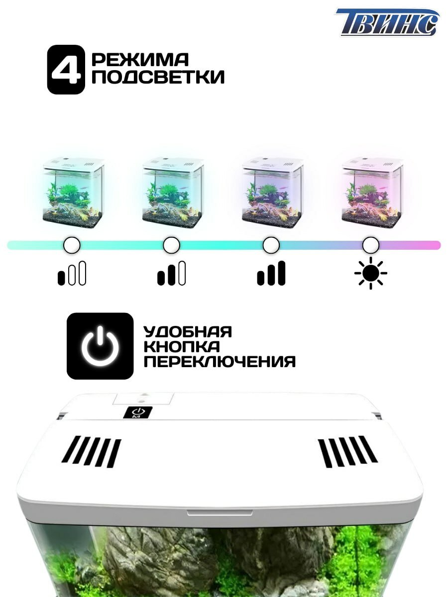 Нано-аквариум JINGYE с фильтром и подсветкой, 4,5 литра, белый, прямоугольный, 14х29х20 интересное: