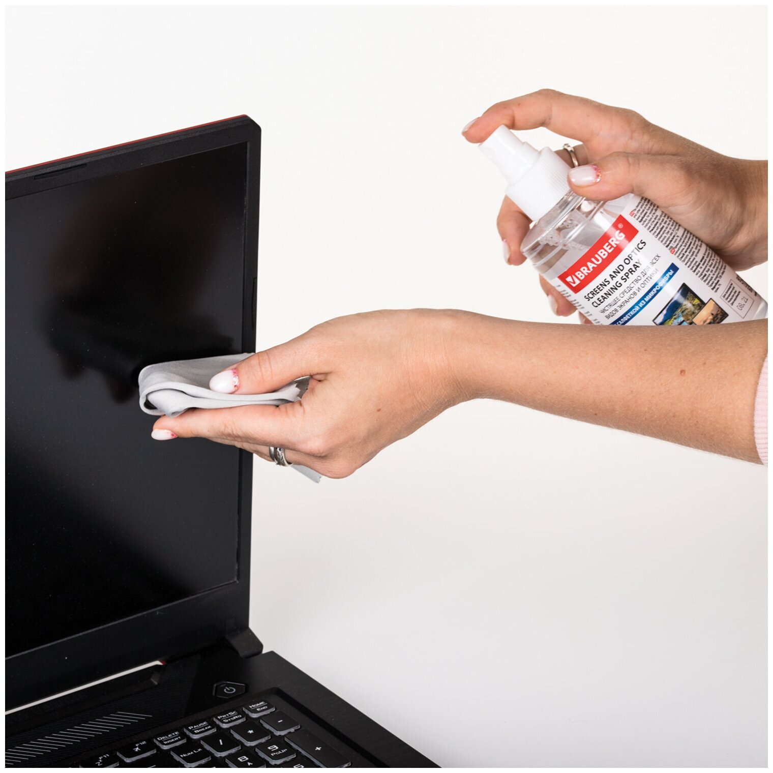 Чистящий набор для экранов всех типов и оптики BRAUBERG, комплект салфетка и спрей, 200 мл, 513560, наш