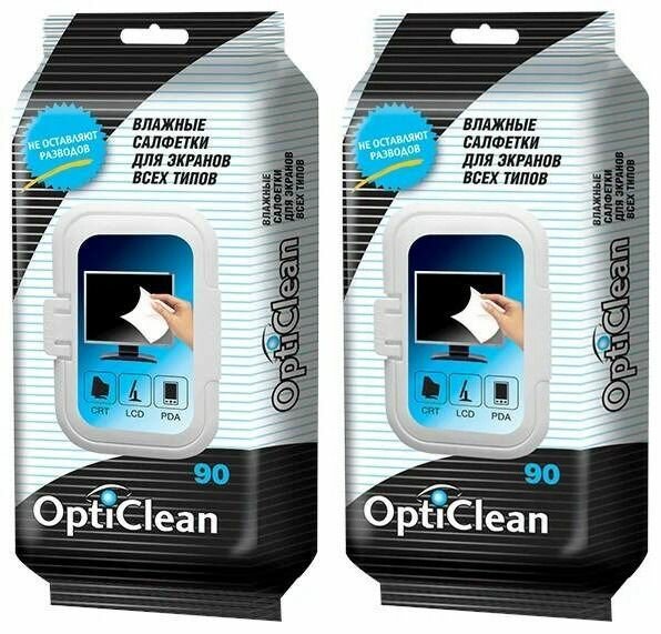 Opti Clean Салфетки влажные для экранов всех типов, 90 шт в уп, 2 уп.