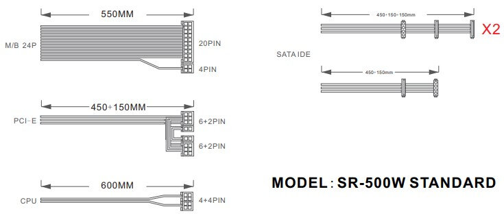 Блок питания 1STPLAYER BLACK.SIR, 500W, 80+ Standart (SR-500W)