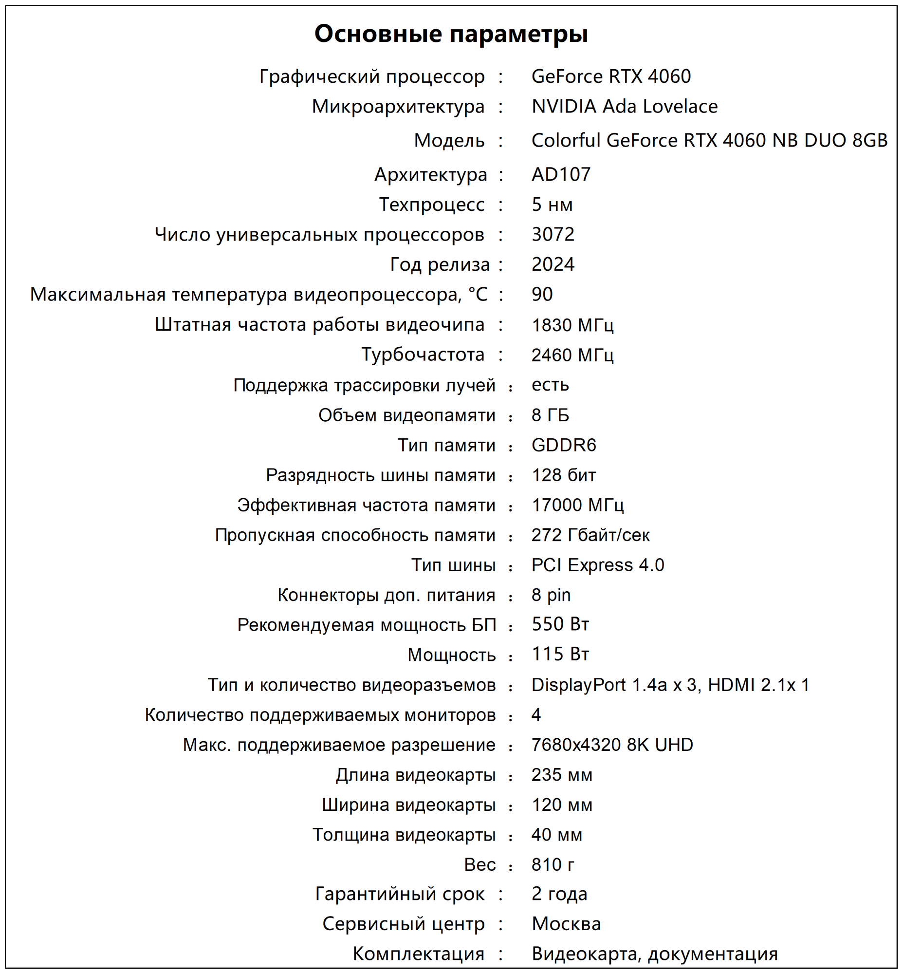 | Название видеокарты | NVIDIA GeForce RTX 4060 |