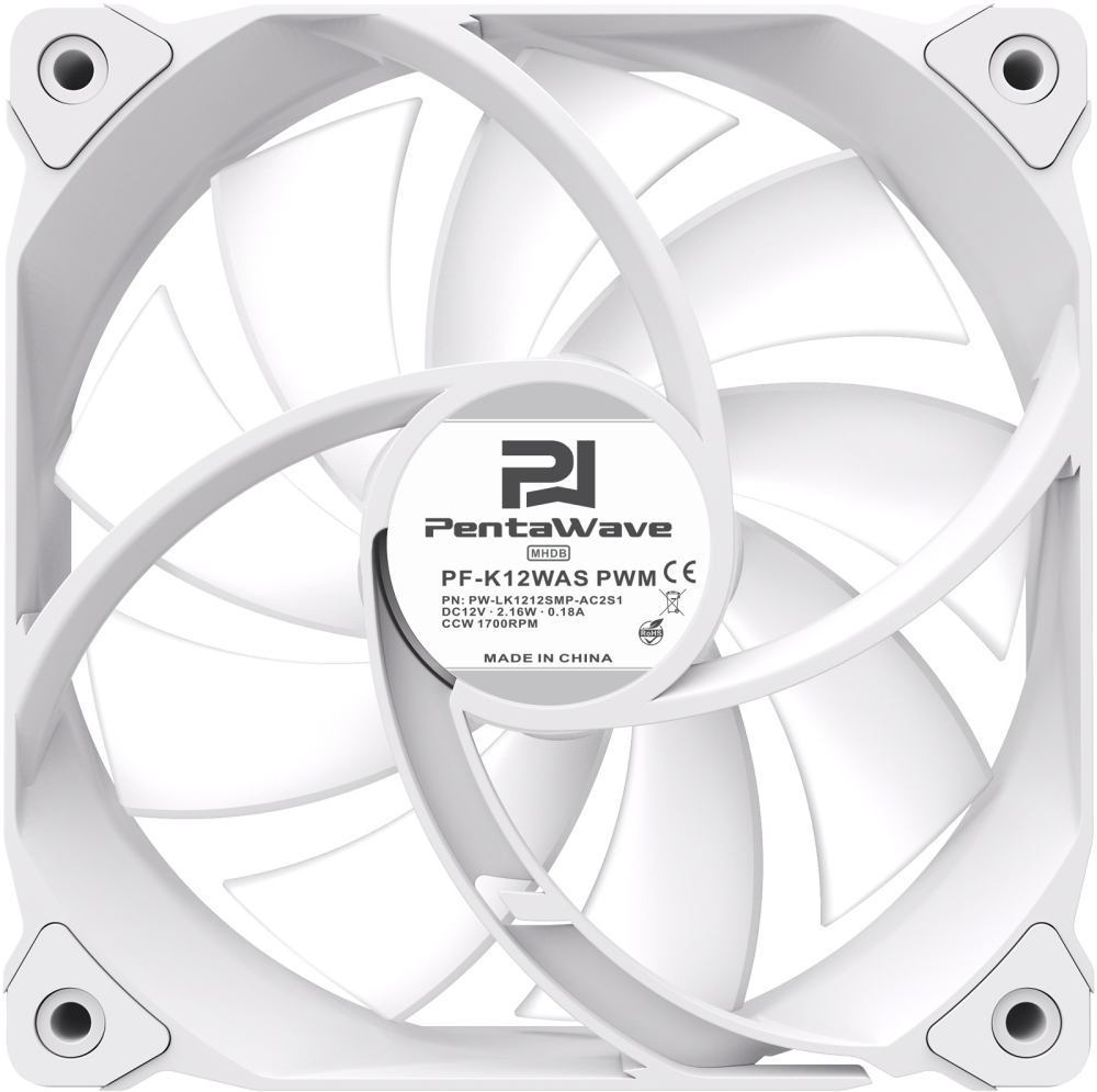 Вентилятор для корпуса PentaWave PF-K12WAS PWM / ARGB / 120mm 4 pin Magnetic Hydraulic 500-1700rpm 76CFM 28.7dBA/ White