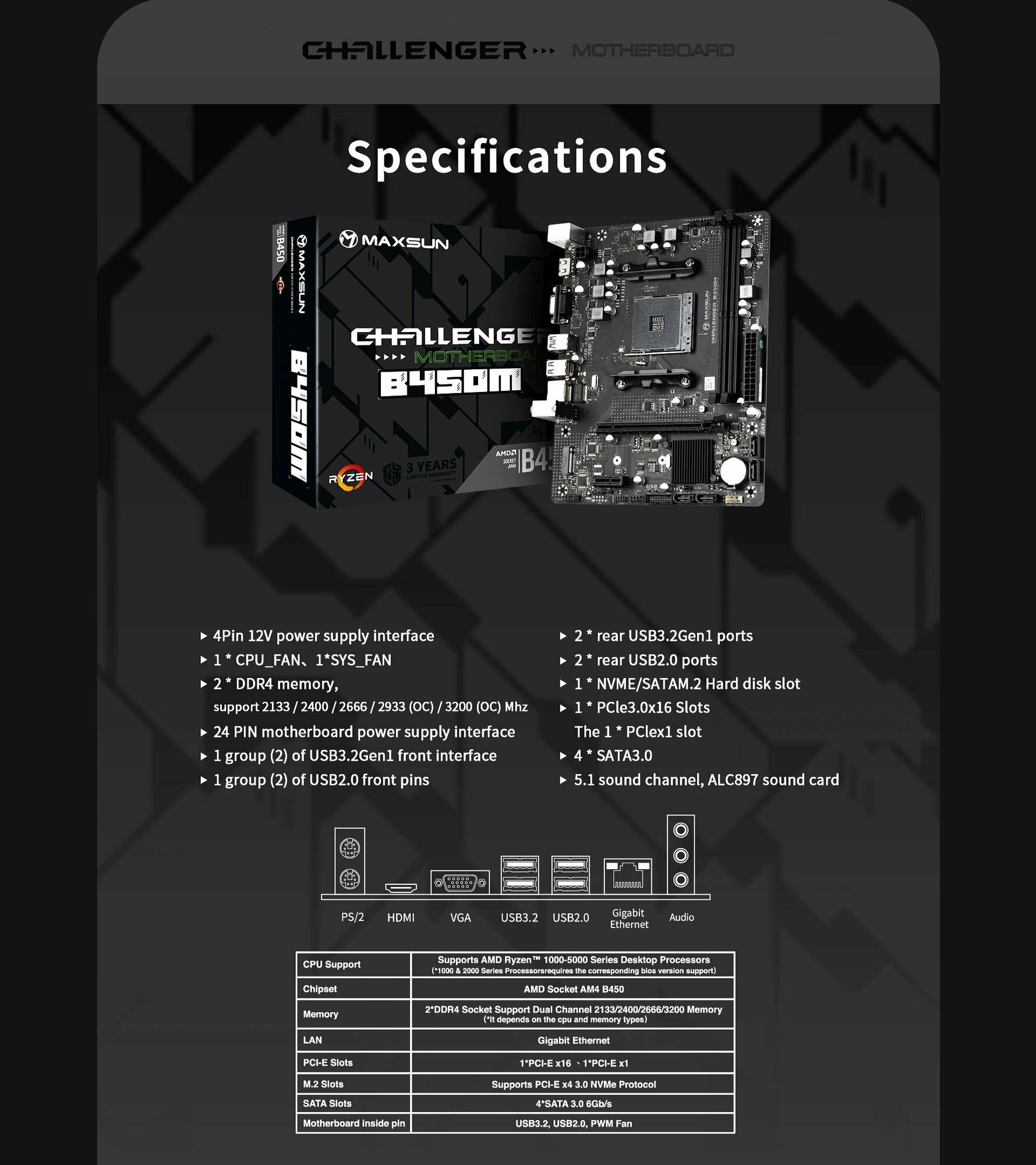 Материнская плата Maxsun CHALLENGER B450M (AM4, MATX)