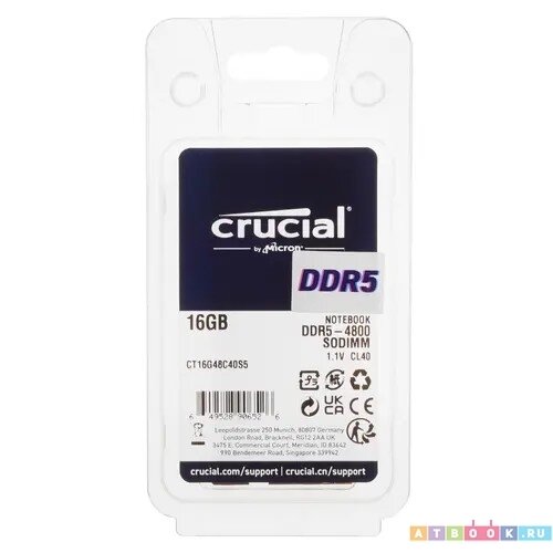 Оперативная память Crucial DDR5 16GB 4800 SODIMM CL40 (CT16G48C40S5)