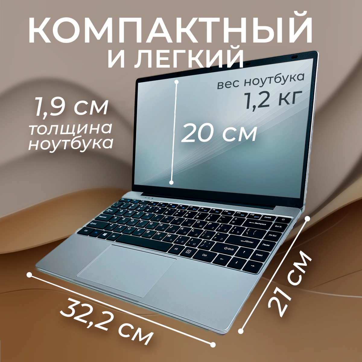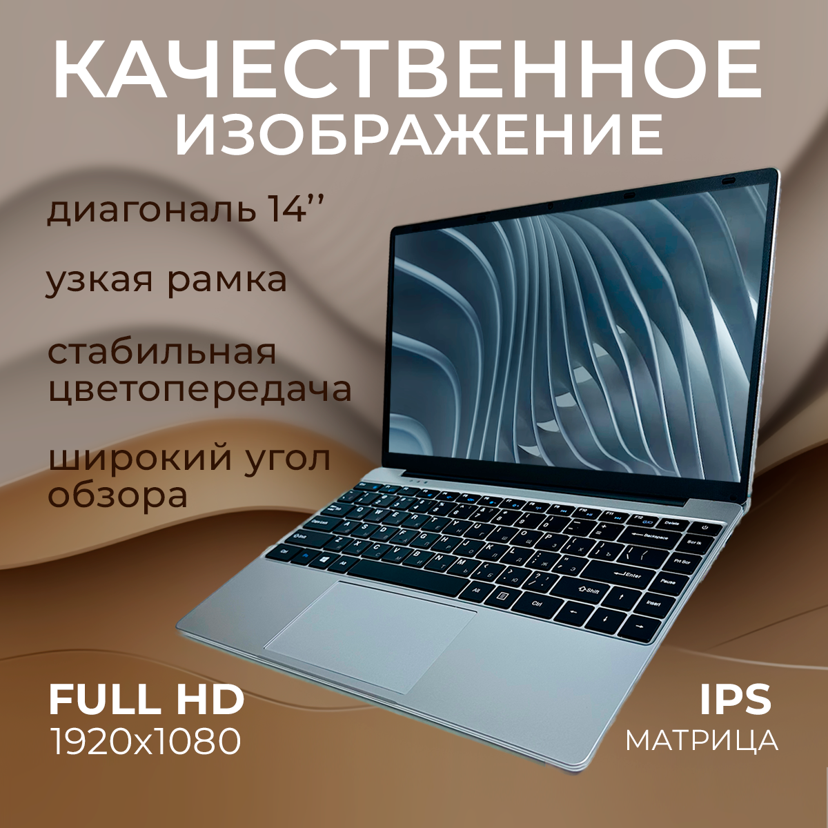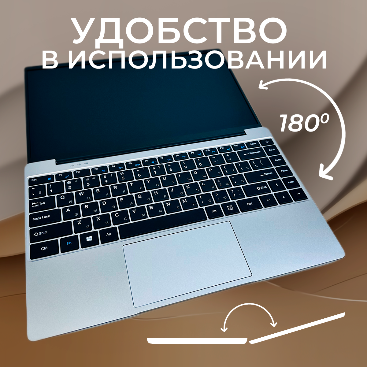 14" ноутбук Intel Celeron N4000 (до 2.6 GHz, 2 ядра), RAM 6 GB, SSD 1 TB, Intel UHD Graphics, Русская клавиатура, Windows 10 Pro