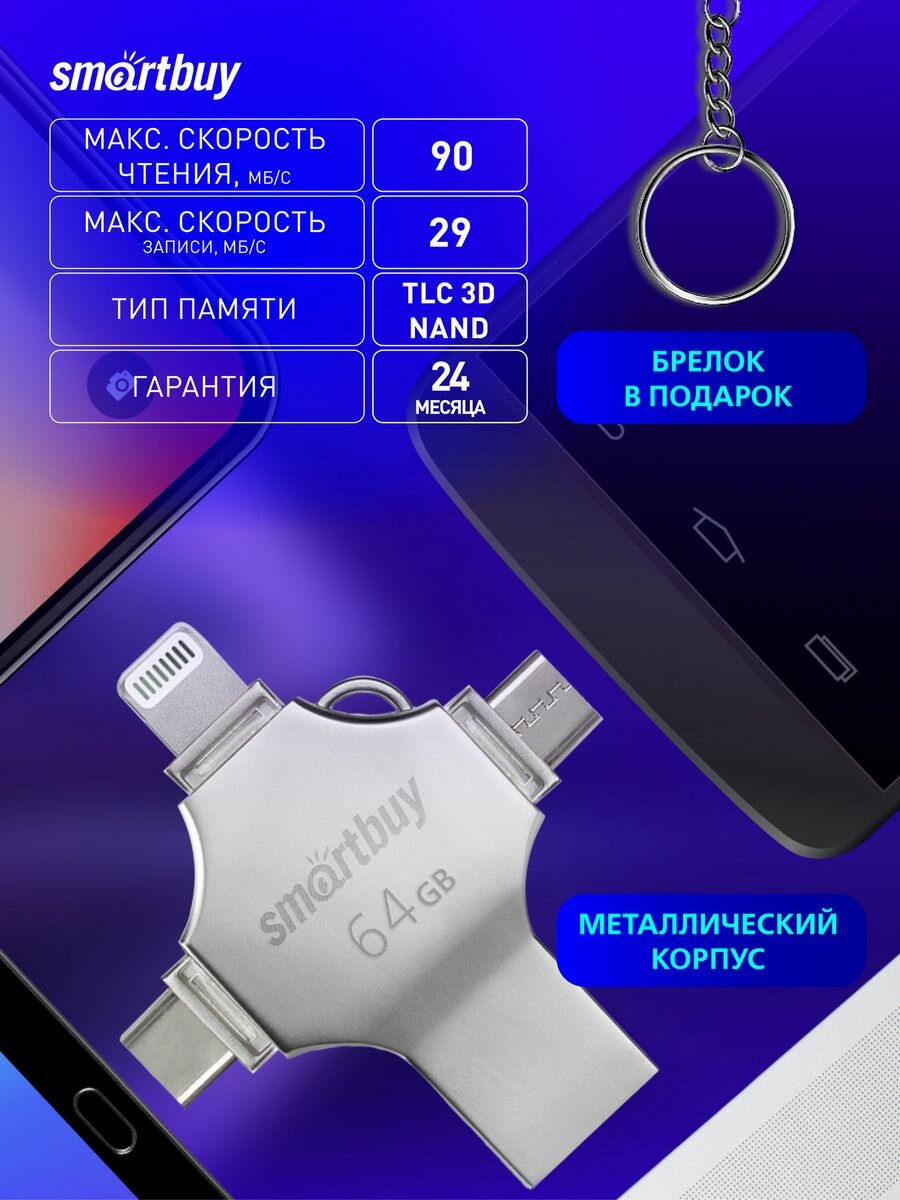 Флешка Smartbuy Quad SB064GBMC15 64 Гб Light Silver