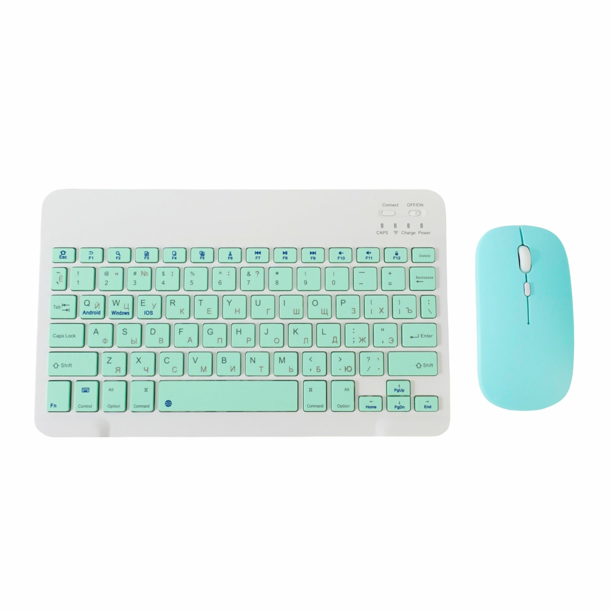 Купить Клавиатура с подсветкой + мышь, Bluetooth, компактная для смартфона, планшета, беспроводная с зарядкой, Vivacat, бирюзовый