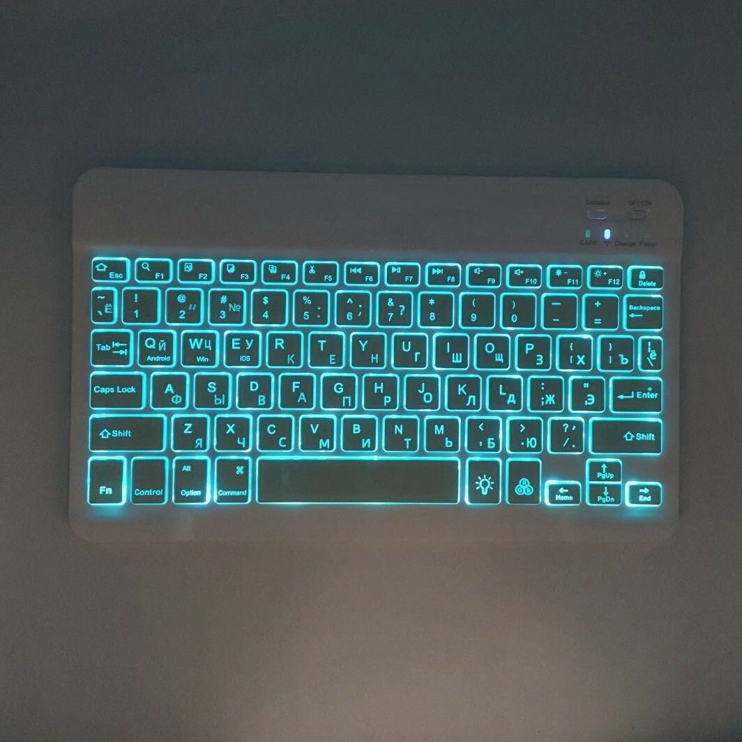 Клавиатура с подсветкой + мышь, Bluetooth, компактная для смартфона, планшета, беспроводная с зарядкой, Vivacat, голубой