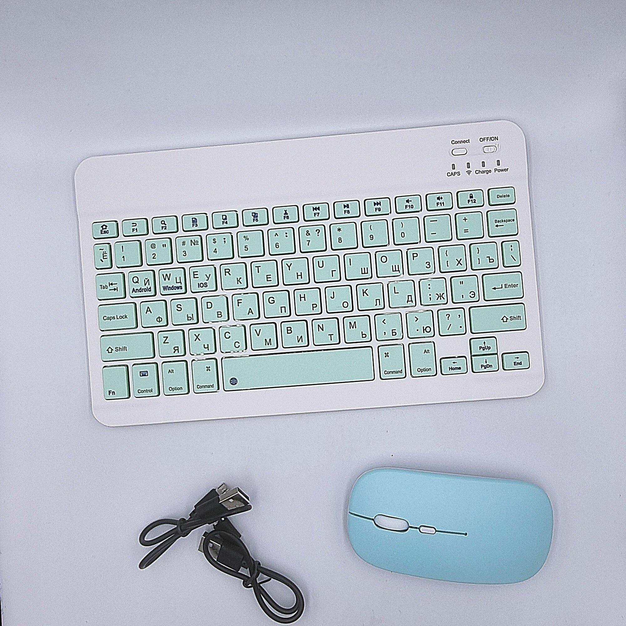 Клавиатура + мышь, Bluetooth, компактная для смартфона, планшета, компьютера, беспроводная с зарядкой, Vivacat, бирюзовый