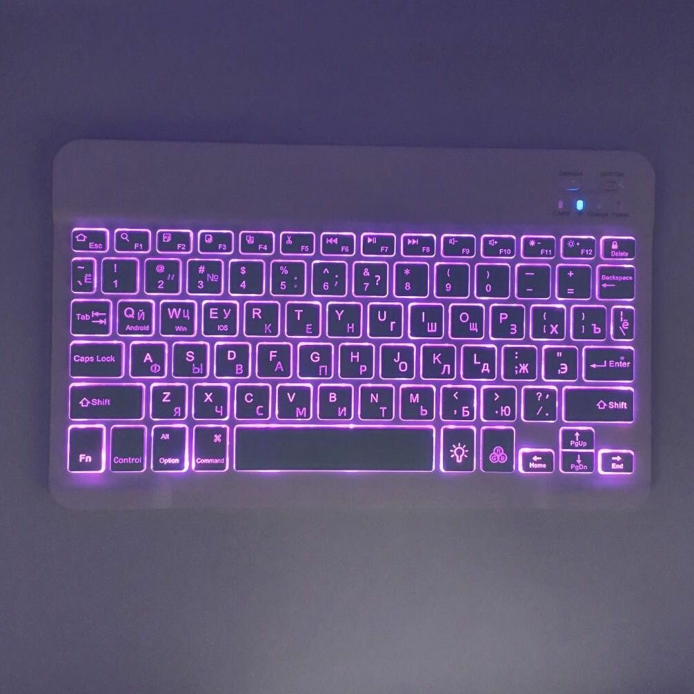 Клавиатура с подсветкой + мышь, Bluetooth, компактная для смартфона, планшета, беспроводная с зарядкой, Vivacat, фиолетовый