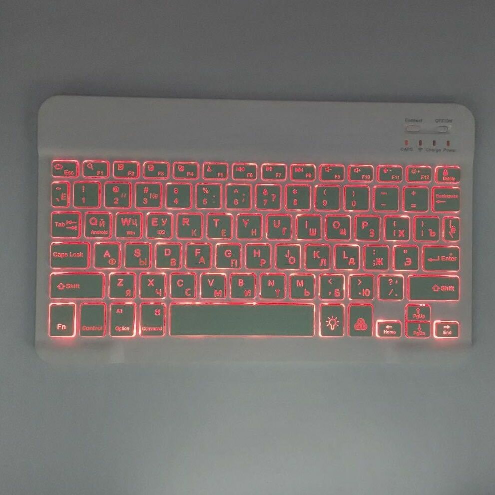 Клавиатура с подсветкой + мышь, Bluetooth, супертонкая для смартфона, планшета, беспроводная с зарядкой, Vivacat, белый