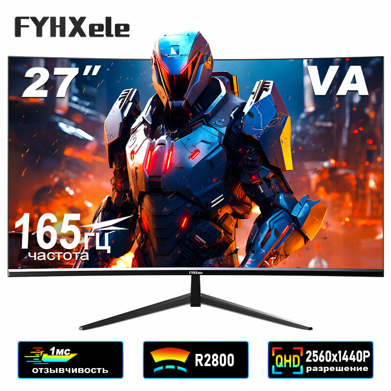 Купить Игровой монитор FYHXele 27 дюймов QHD 1440P 165 Гц R2800 изогнутый монитор FY27QHC-B VA 16:9 LED Бесплатная синхронизация, отклик 1 мс HDMI/DP с динамиками
