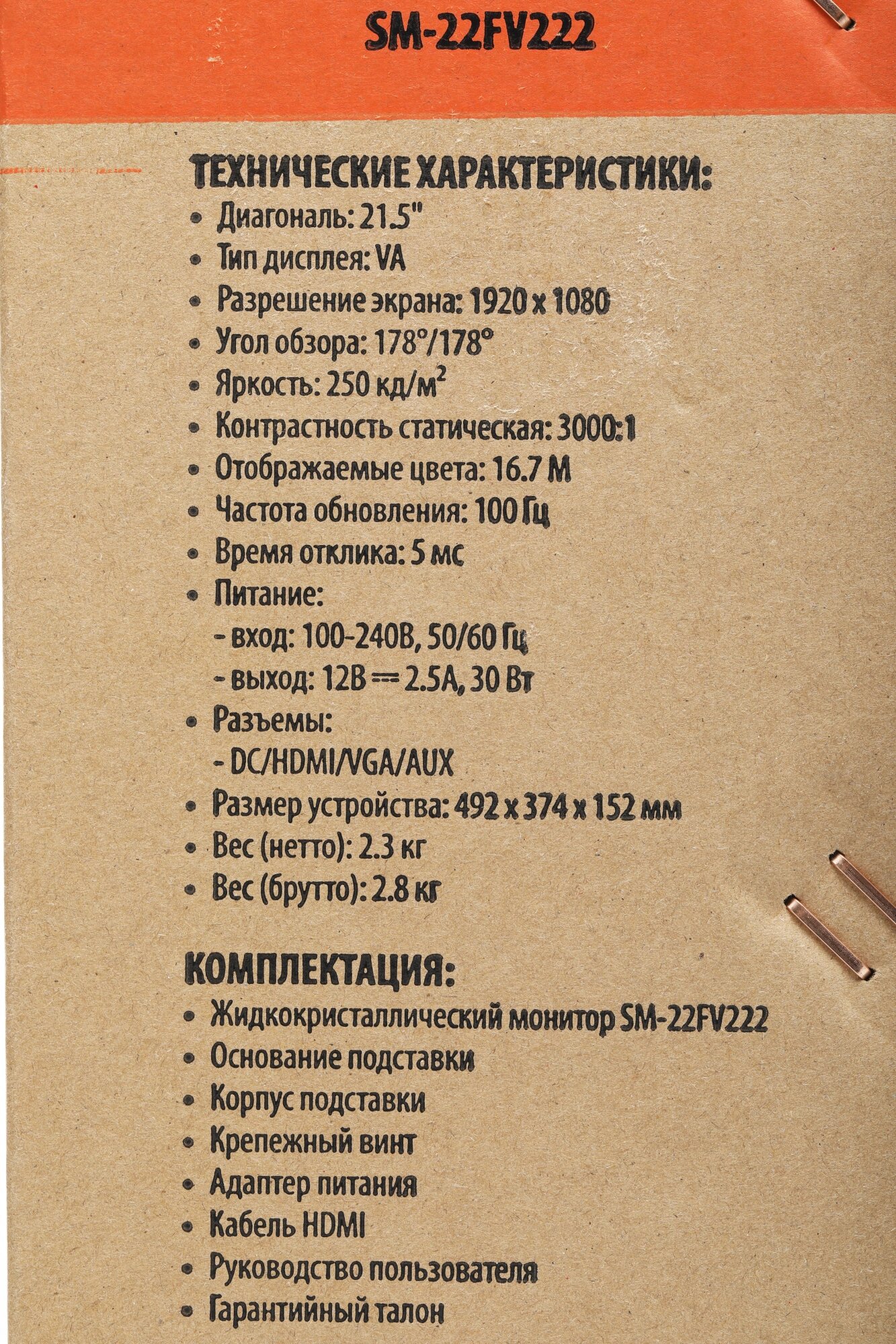 Монитор SunWind SM-22FV222 21.5", черный [sm22vb01]