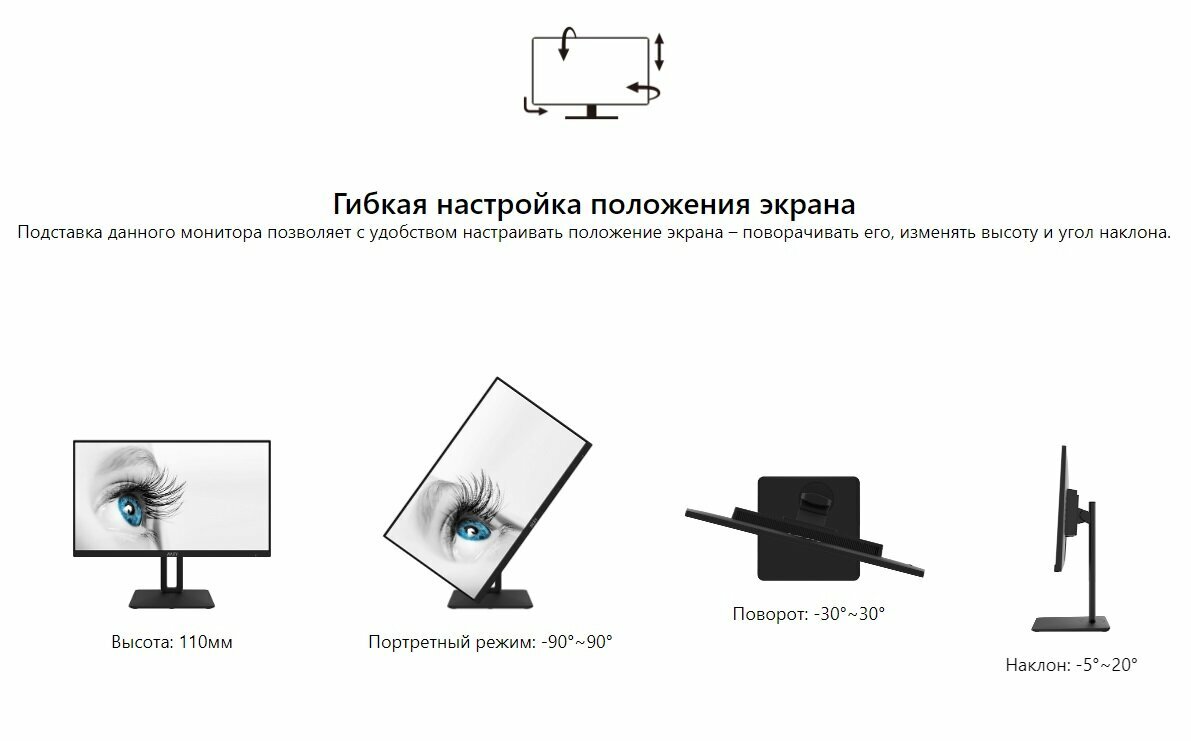 | Особенности | встроенные колонки / поворот на 90 градусов / подсветка без мерцания (Flicker-Free) / регулировка по высоте |