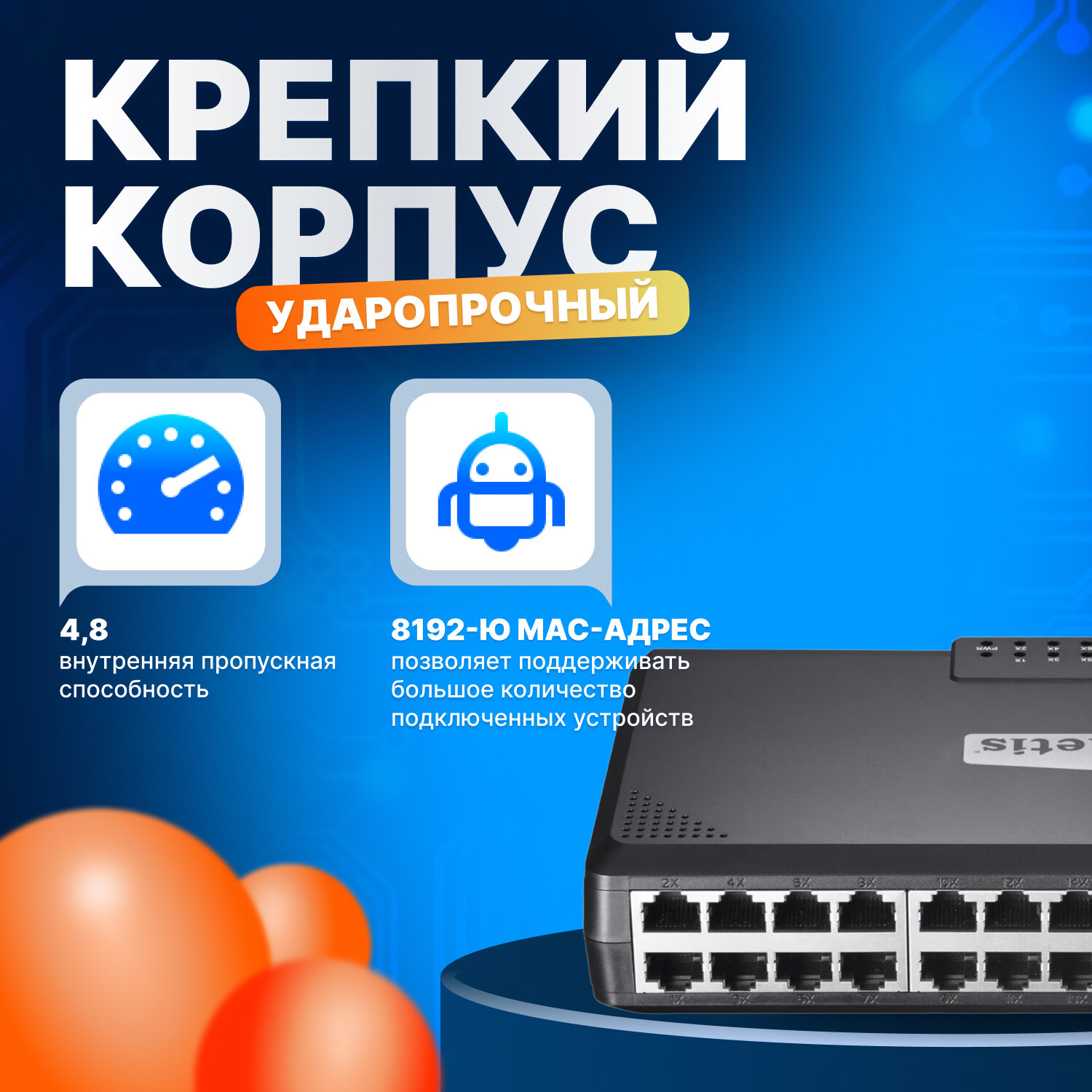 Коммутатор NETIS ST3124P 24-портовый, 100 Мбит/с, неуправляемый, черный интересное: