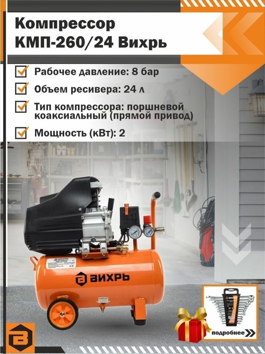 Компрессор Вихрь КМП-260/24 220В 2 кВт 260л/мин вихрь КМП-260/24 | цена за 1 шт