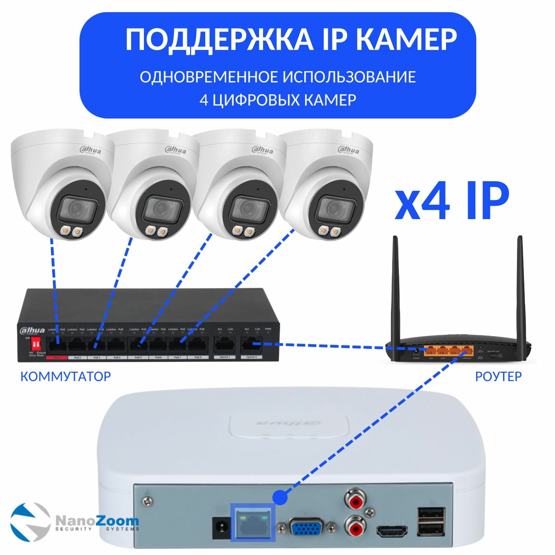 | Максимальное количество IP камер | 4 шт. |