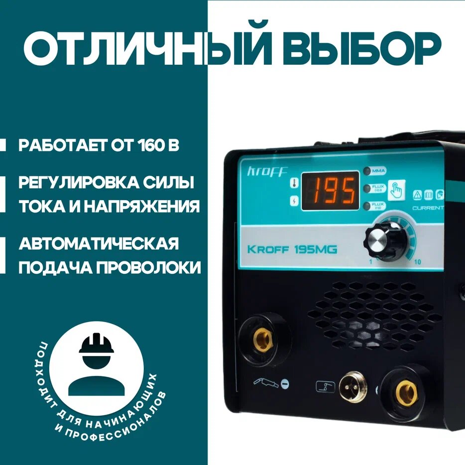 Сварочный полуавтомат инверторный 195MG Kroff (220В, max d электрода 4 мм ) Антизалипание / горячий старт /форсаж дуги