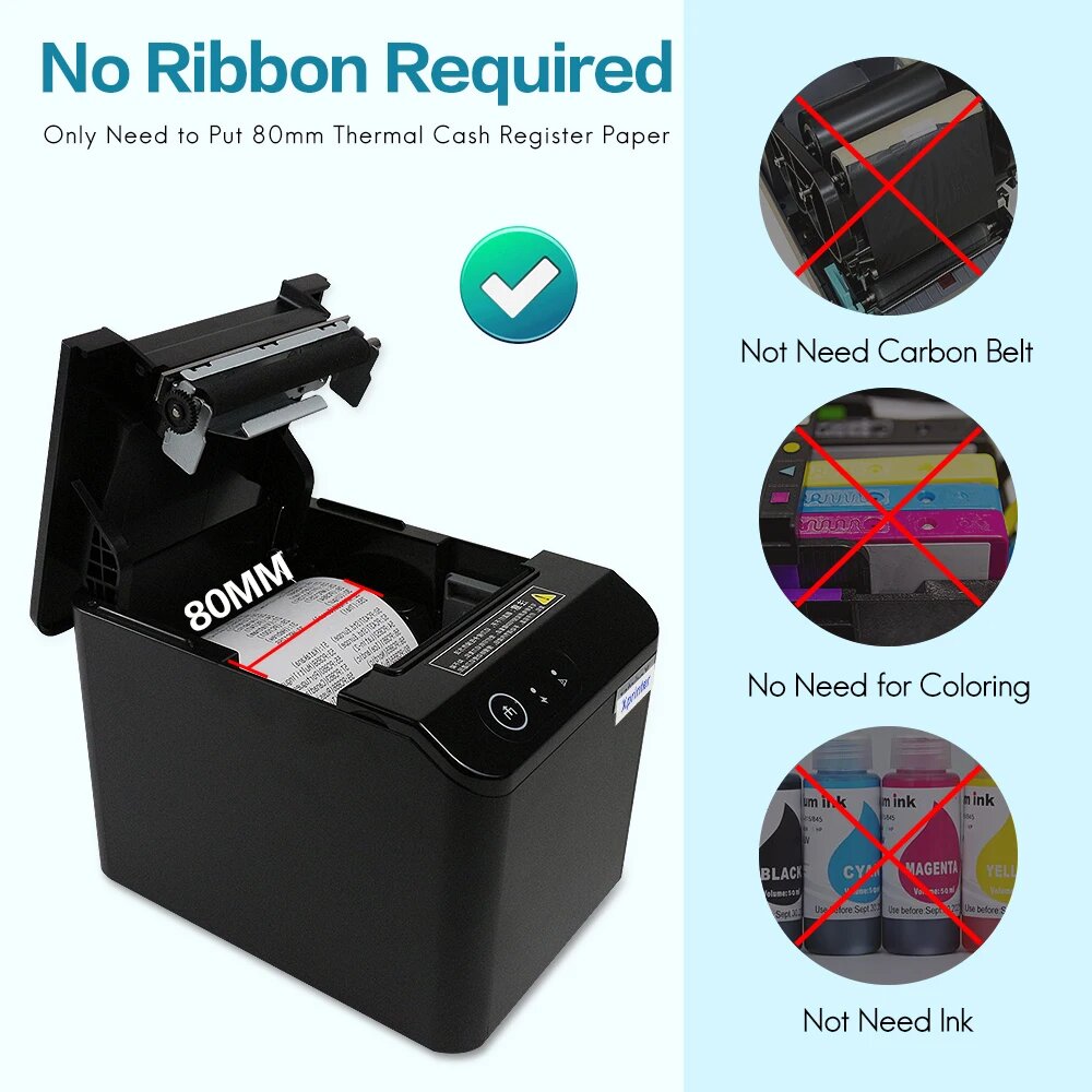 Купить Новый Портативный чековый принтер Xprinter 80 мм, ручной принтер T80Q, принтер с автоматическим резцом, POS-принтер, кухонный принтер