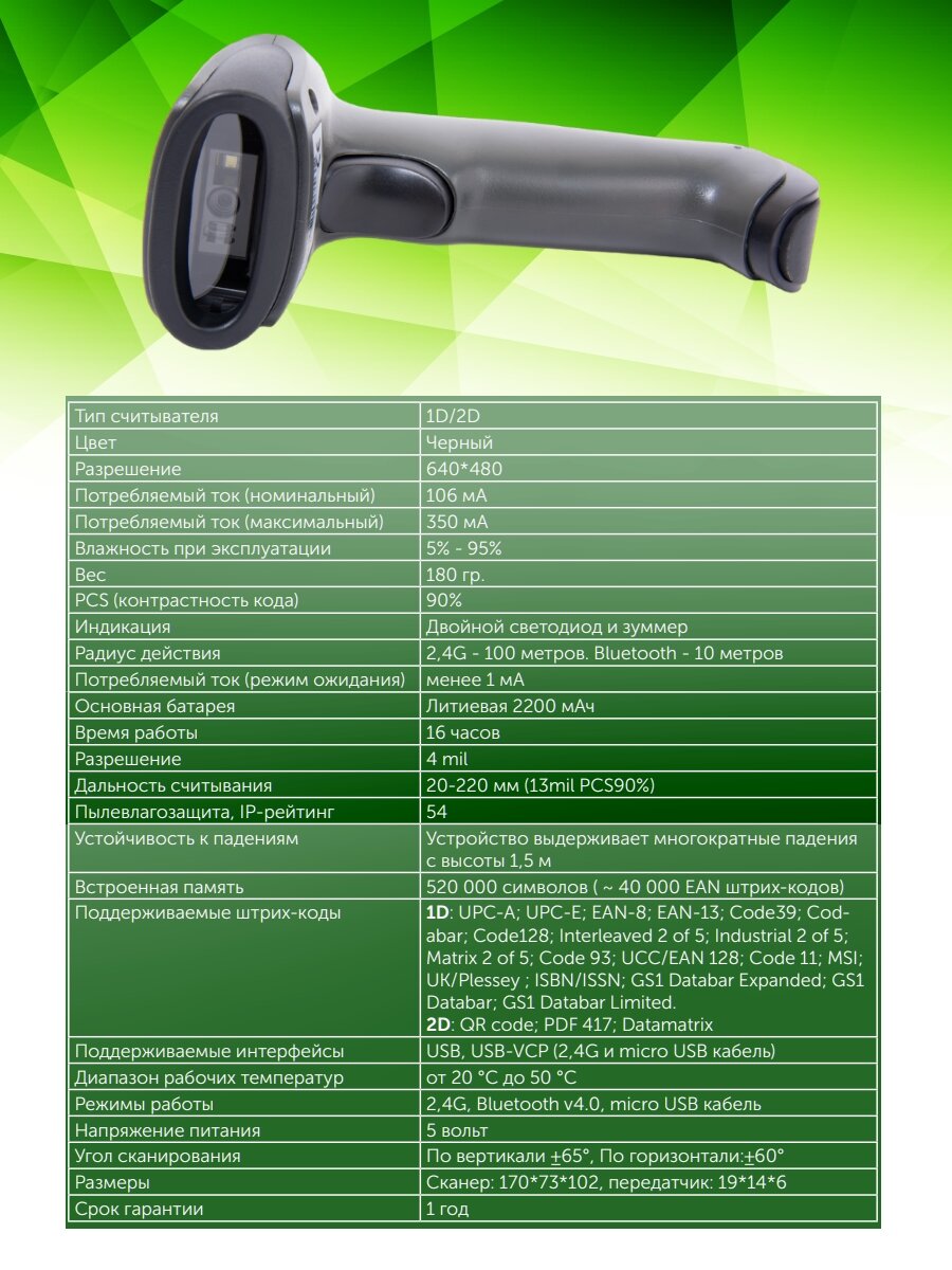 СохранитьСканер беспроводной Poscenter 2D ВТ, USB кабель, USB адаптер интересное: