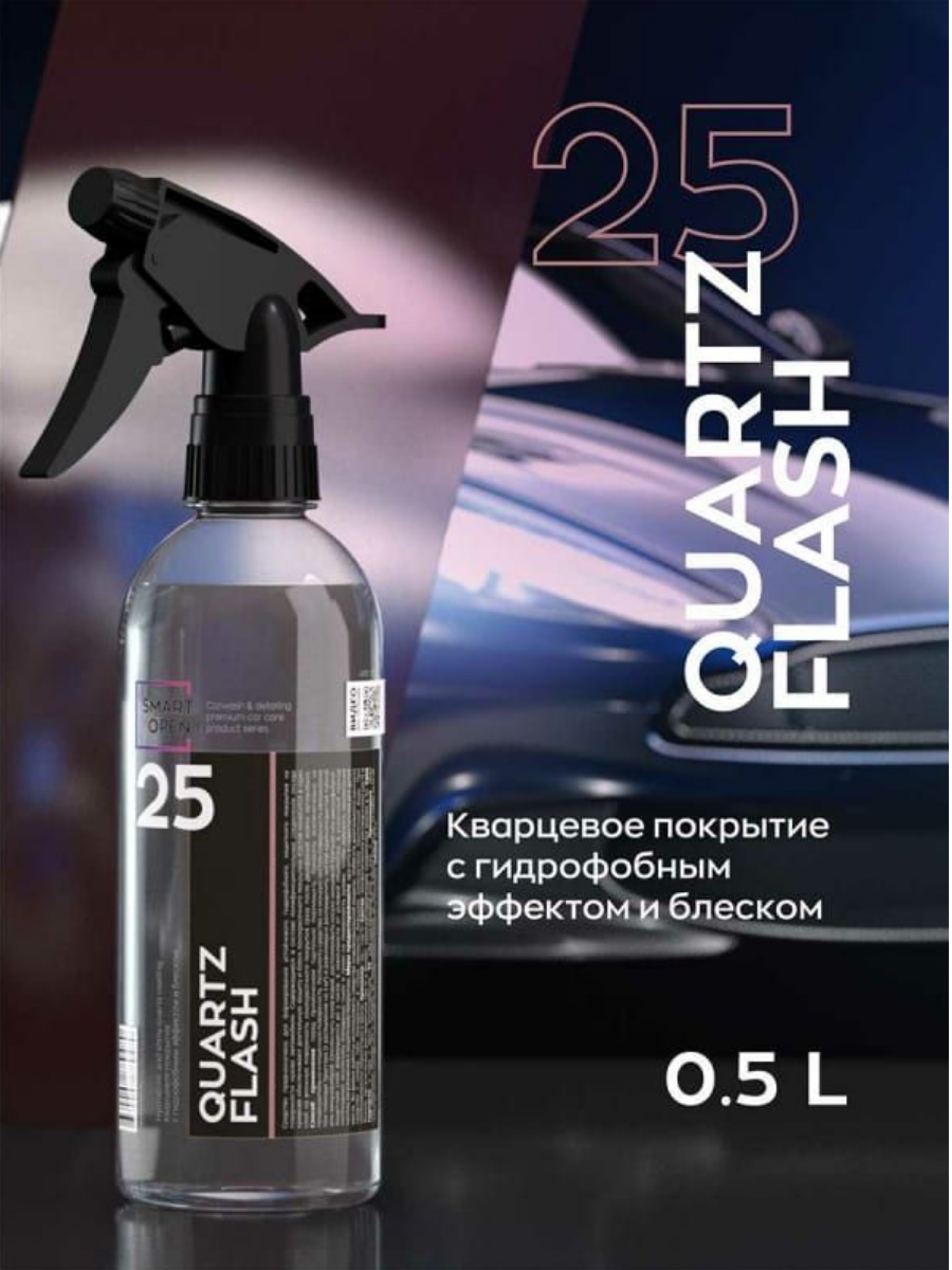 Кварцевое покрытие для кузова автомобиля с гидрофобным эффектом и блеском Smart Open Quartz Flash 0.5л 152505 интересное: