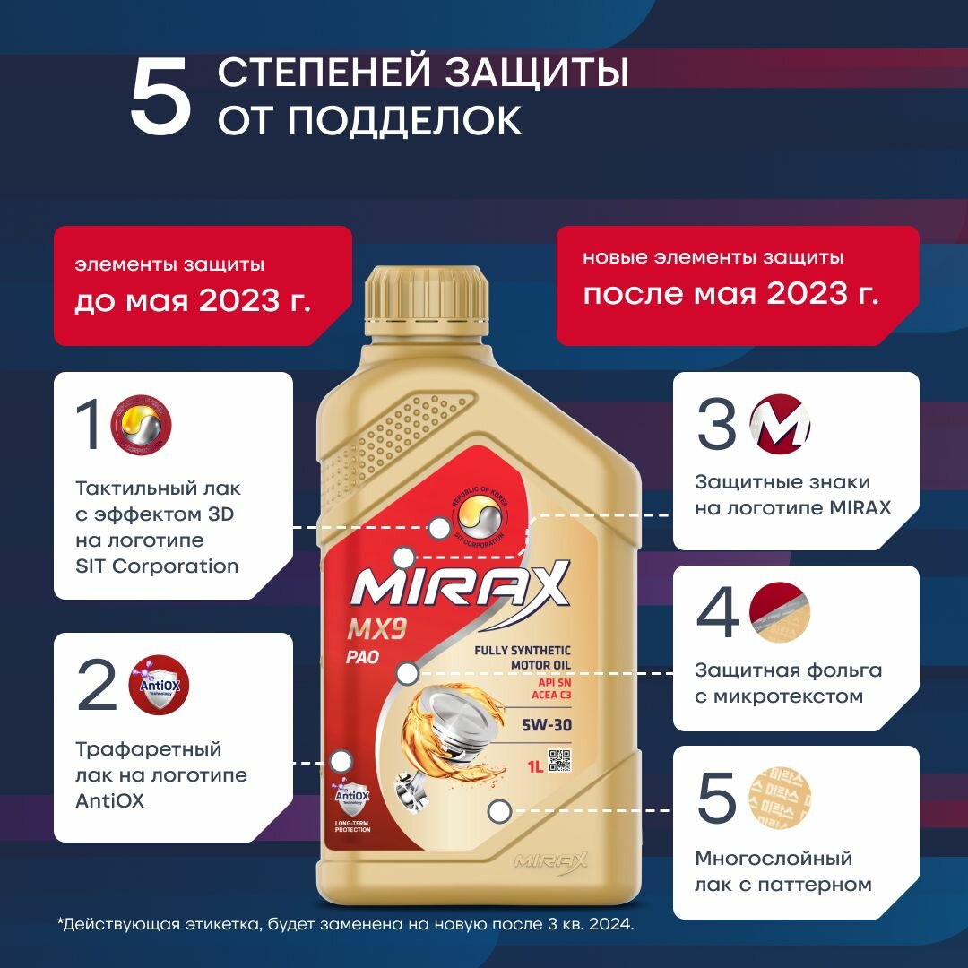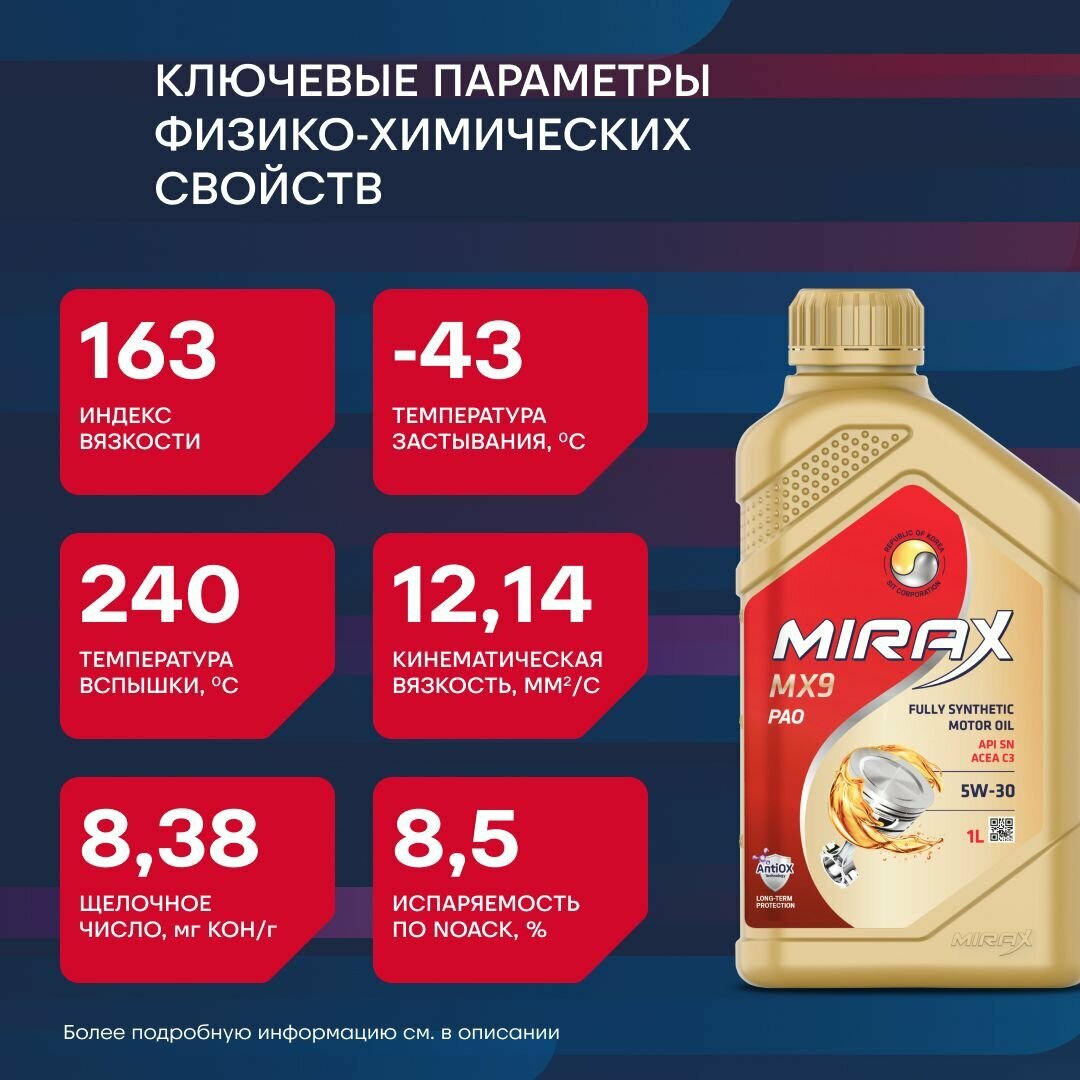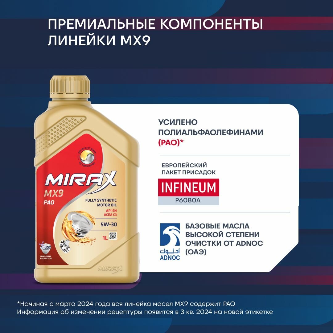Mirax mx9 sae 5w-30 ilsac gf-6a api sp 1л