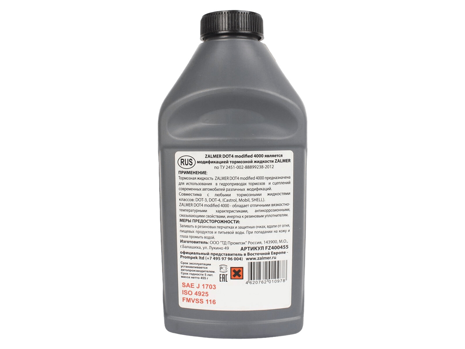 Жидкость тормозная DOT-4 0.455кг, FZ400455, ZALMER