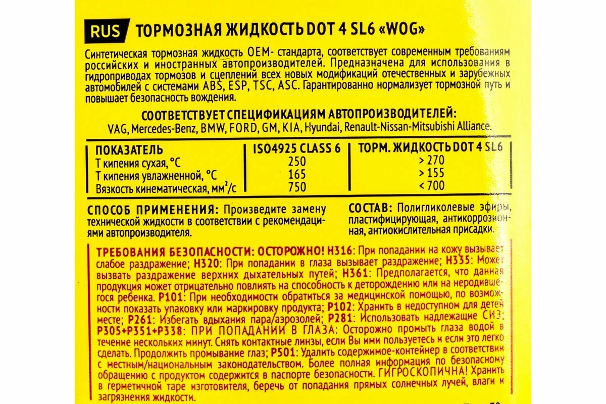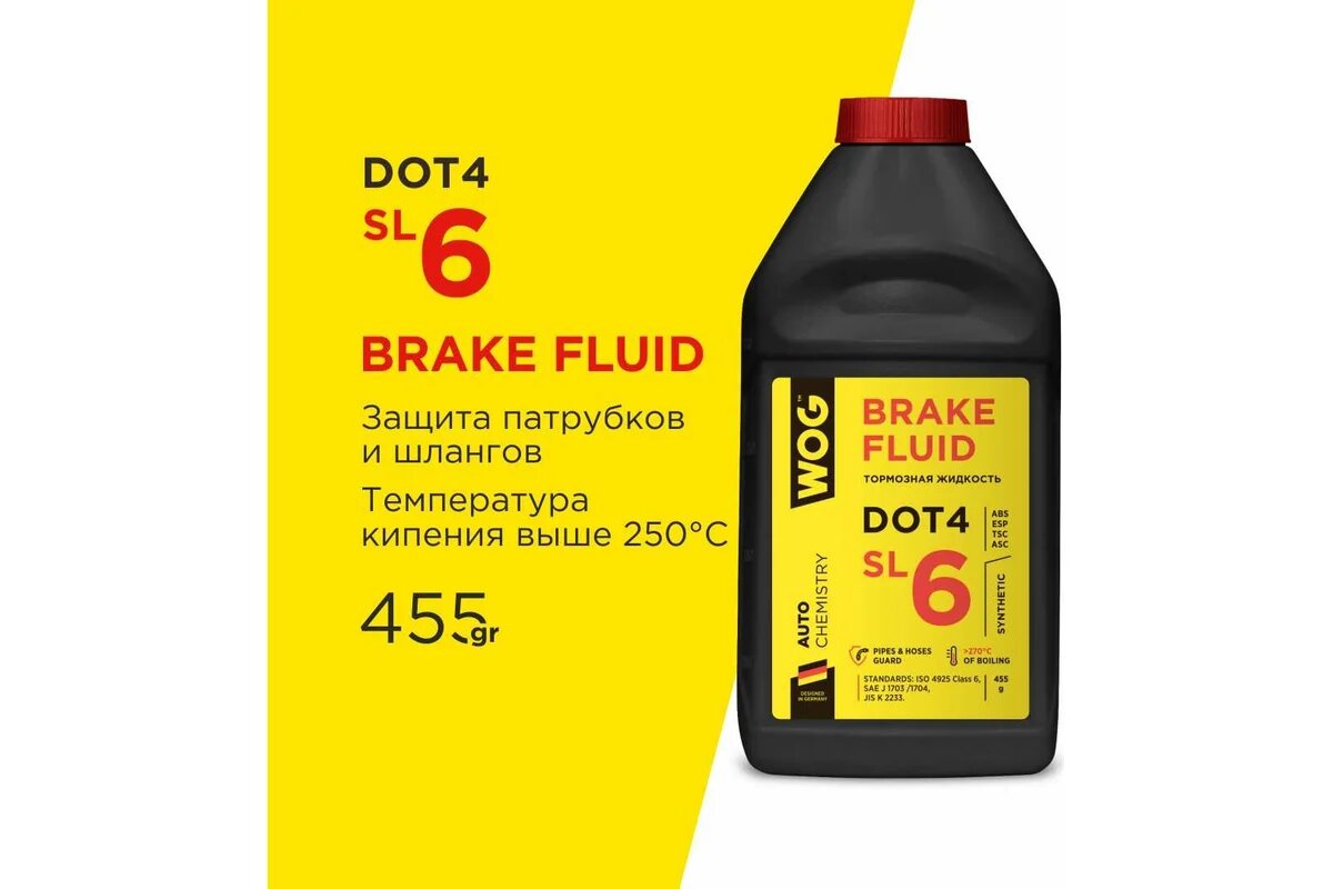 WOG WGC0142 жидкость тормозная 455гр - dot 4 sl6, синтетическая для авто с abs, esp, tsc и asc, соответствует: интересное: