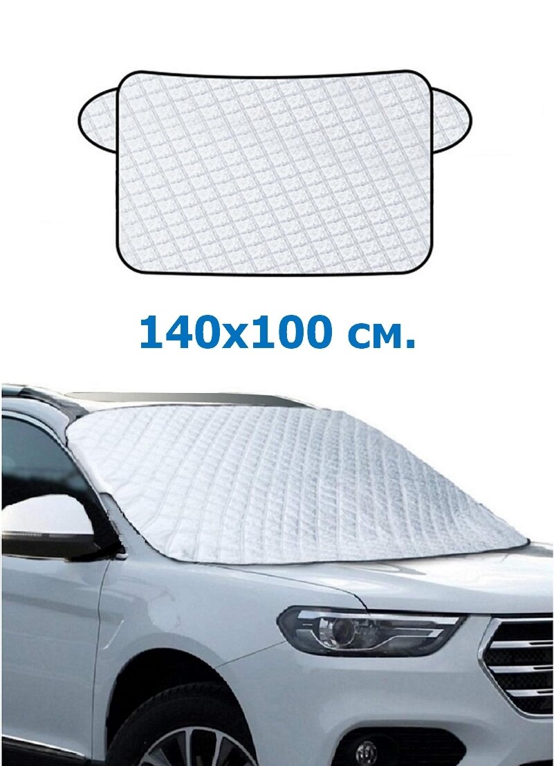 Накидка на лобовое стекло автомобиля от снега, дождя, наледи и солнца, Чехол для лобового стекла с магнитами L 145x110 см.