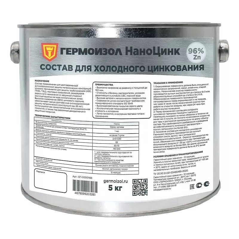 Гермоизол НаноЦинк - Состав для холодного цинкования. 5кг ТУ 20.30.12-021-03495485-2021 БП-00001183 интересное: