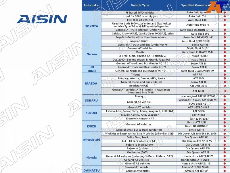 Масло Трансмиссионное Atf Wide Range Afw+ 4Л Aisin арт. ATFMT4S интересное: