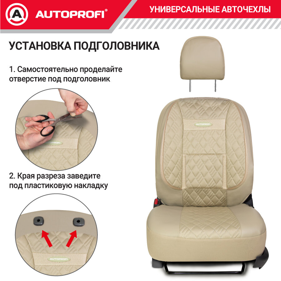 Чехлы универсальные Comfort /св.бежевый/ экокожа 11 предм. AUTOPROFI COM-1105GP L.BE/L.BE