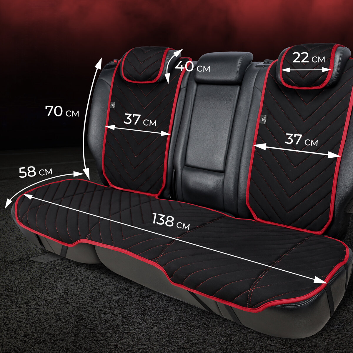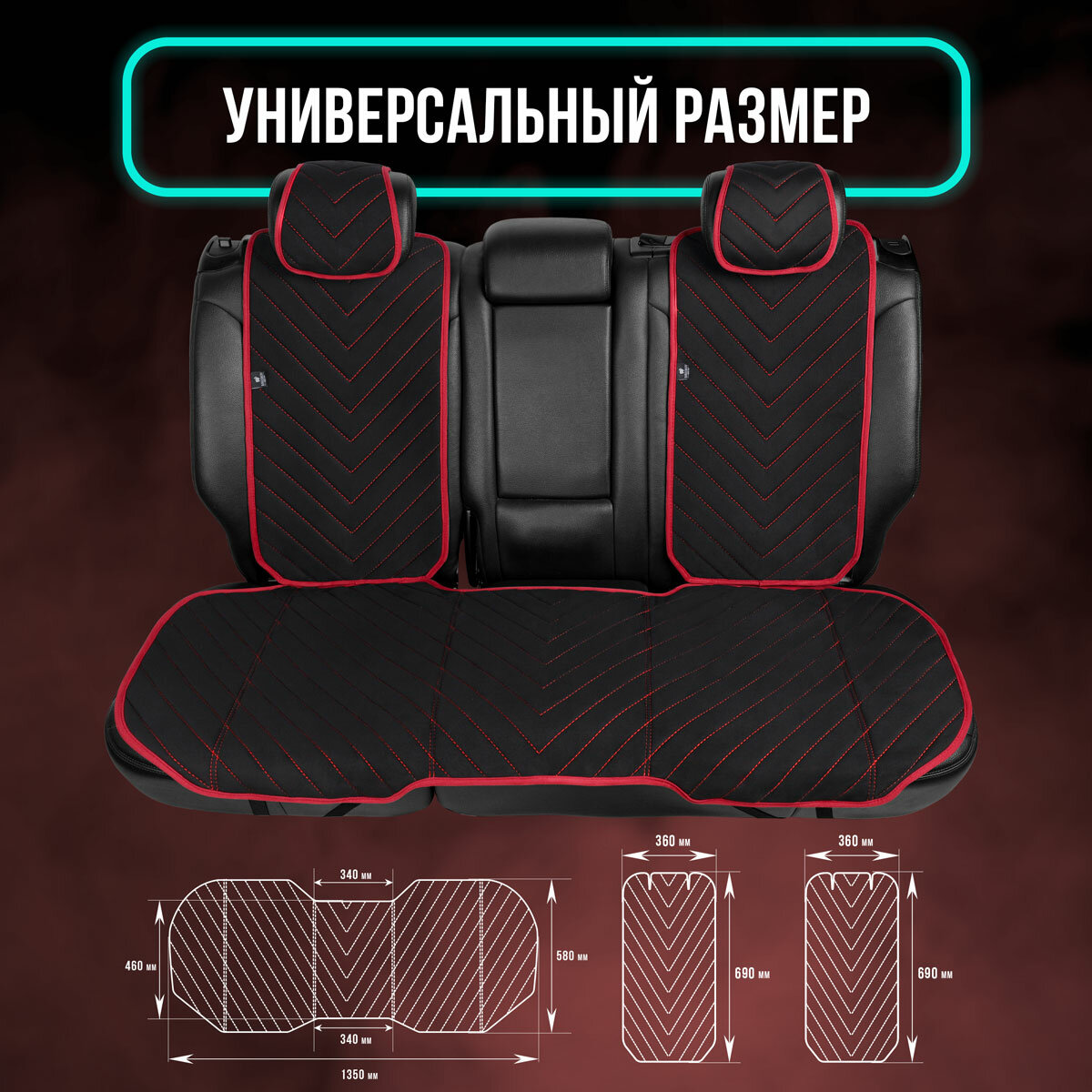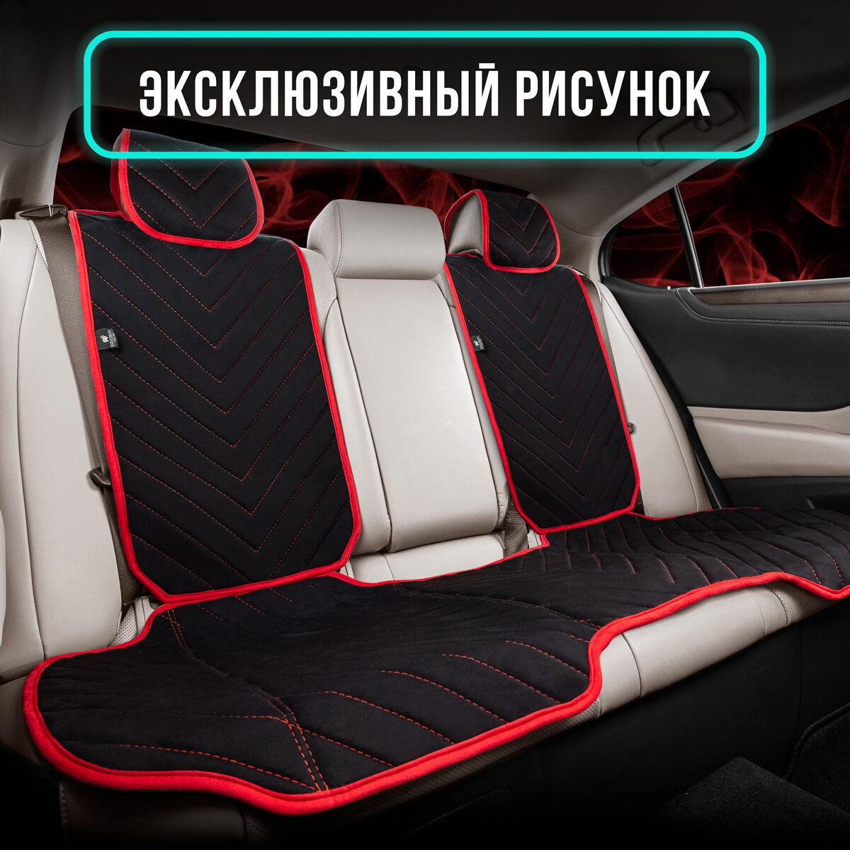 Купить Полный комплект накидки из алькантары на сиденья автомобиля. Модель L SV PK.Чёрный/красный кант