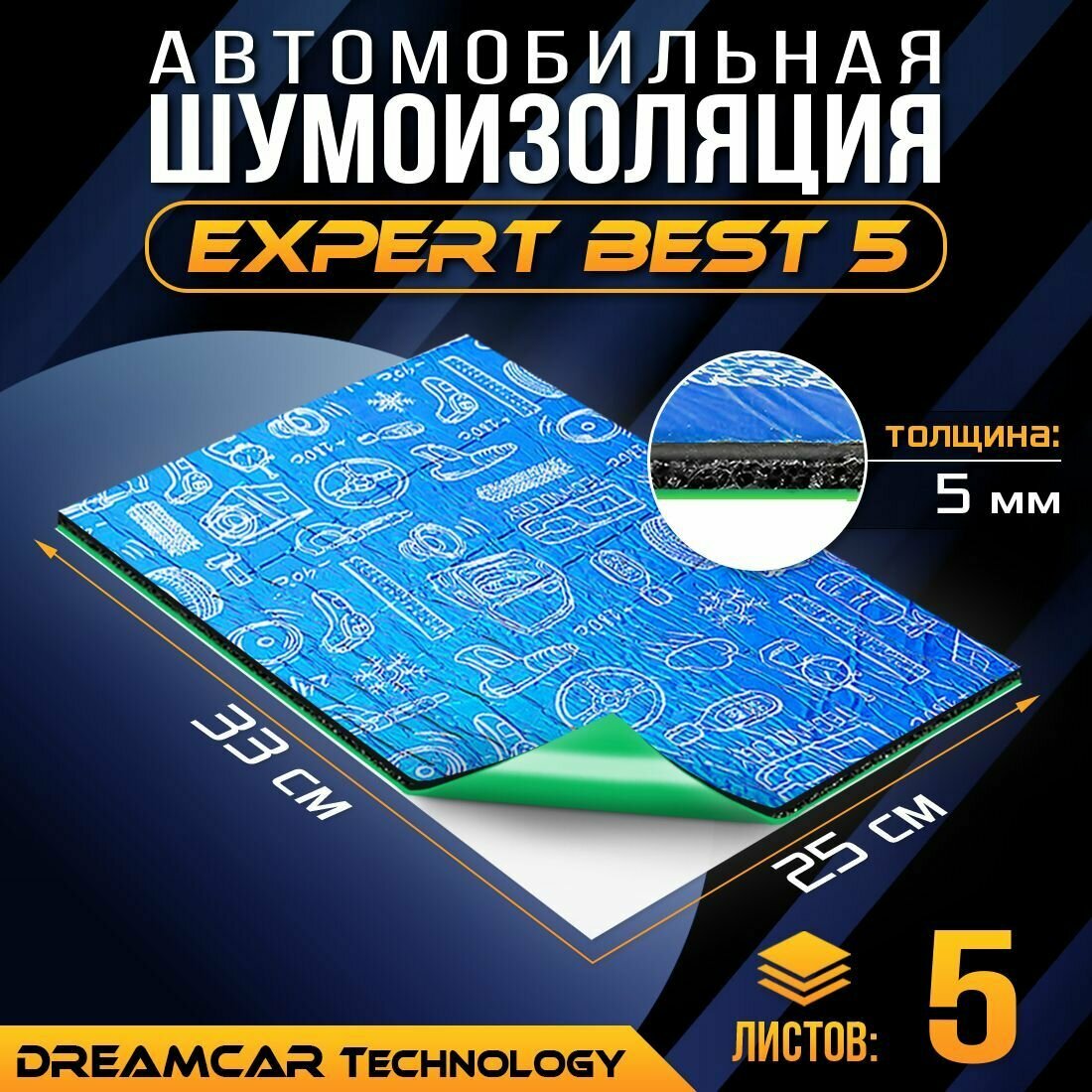 Шумоизоляция для автомобиля DreamCar Expert Best 5мм, 33*25 см, 5 листов, шумка для второго слоя