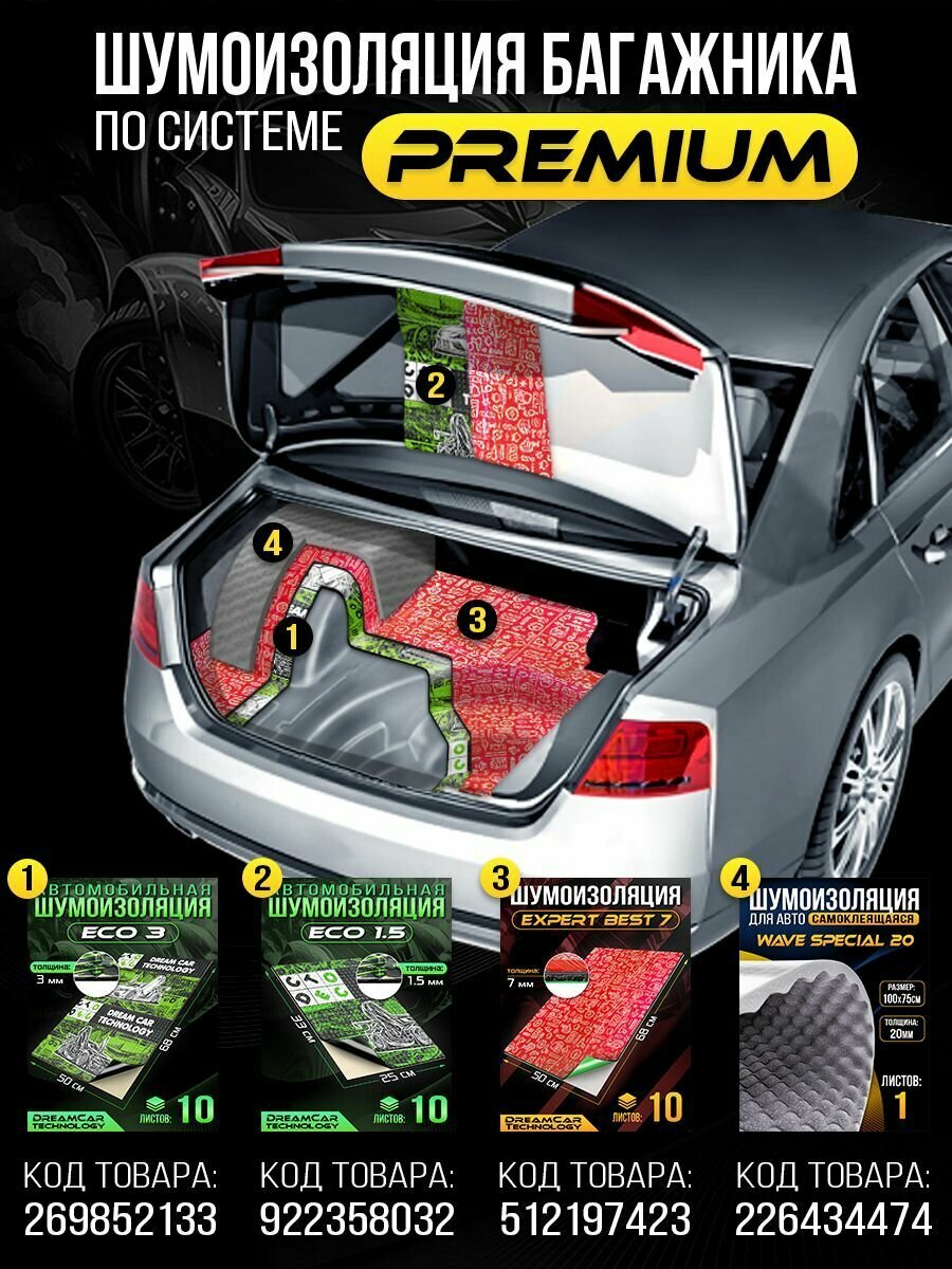 СохранитьШумоизоляция для автомобиля DreamCar Expert Best 7 68*50 см, 10 листов, шумка для второго слоя интересное: