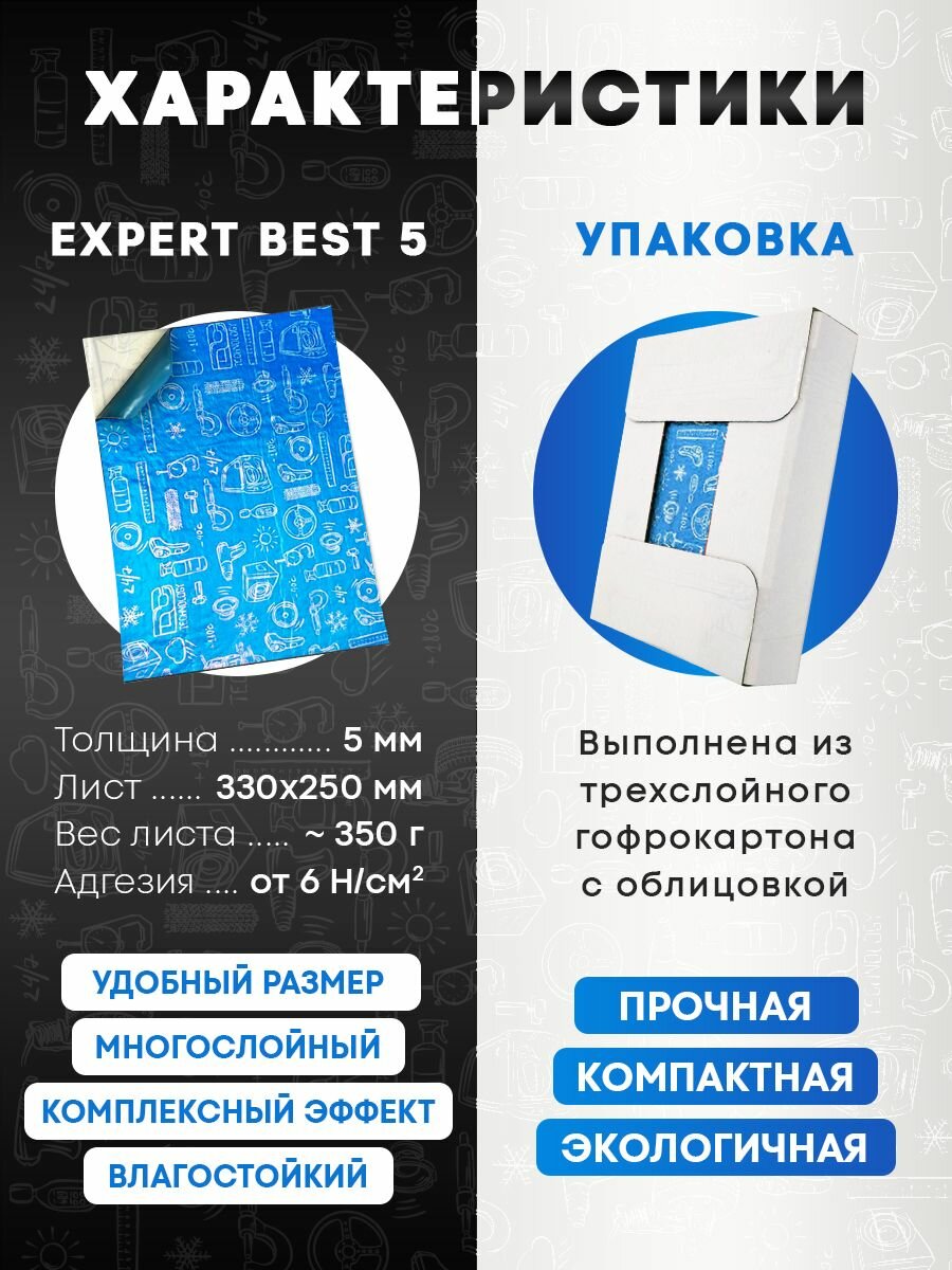 Шумоизоляция для автомобиля DreamCar Expert Best 5мм, 33*25 см, 5 листов, шумка для второго слоя