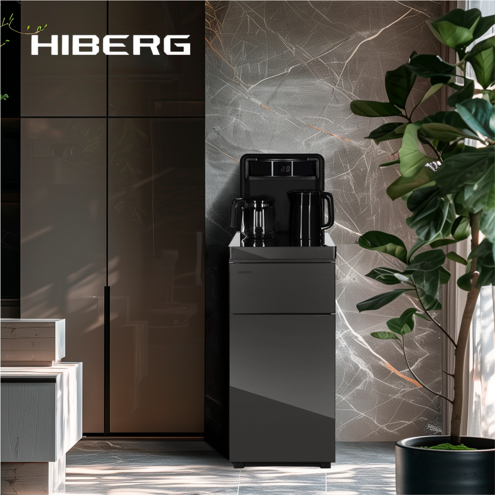 Кулер для воды HIBERG UF 95 B напольный, электронное охлаждение, сенсорное управление, цвет черное стекло