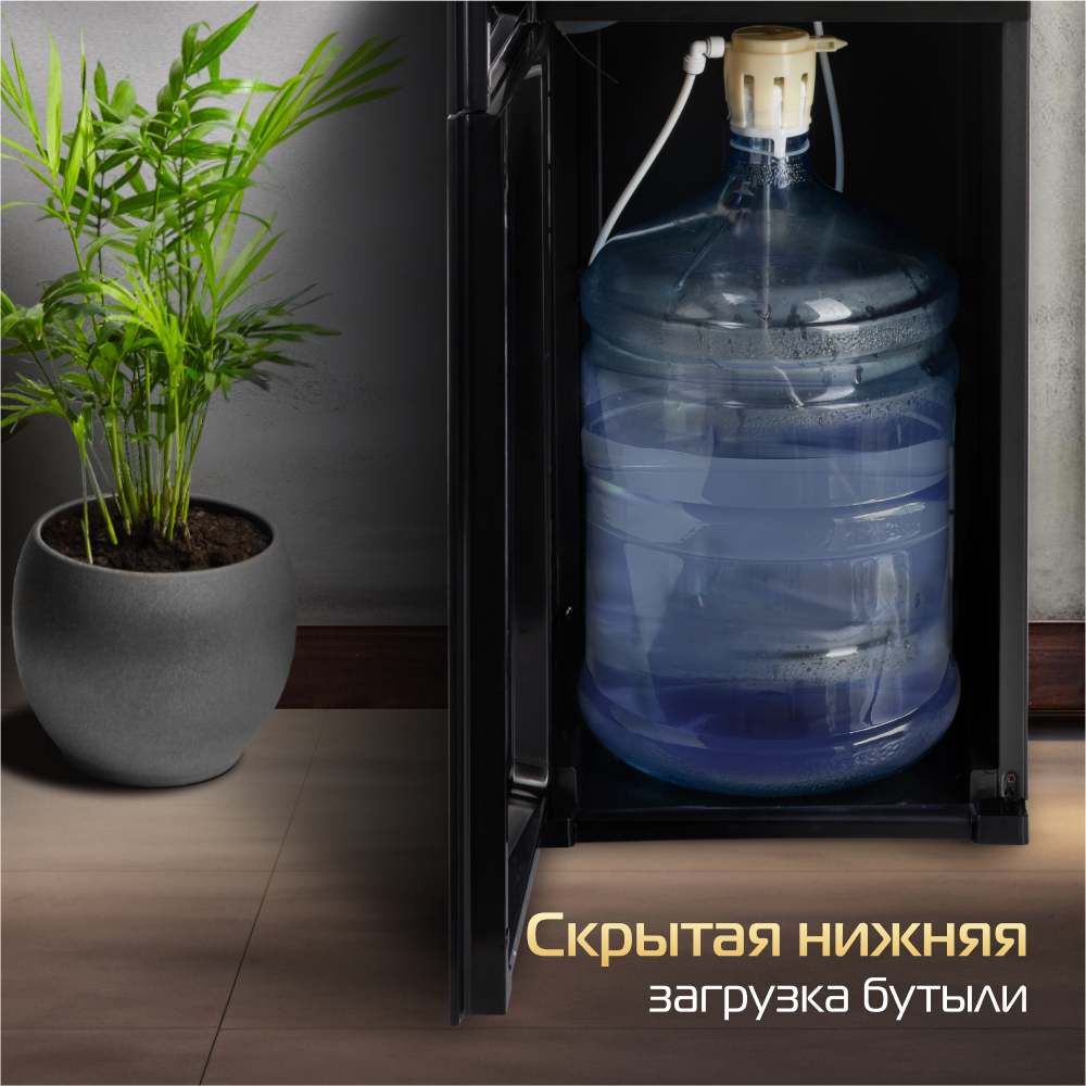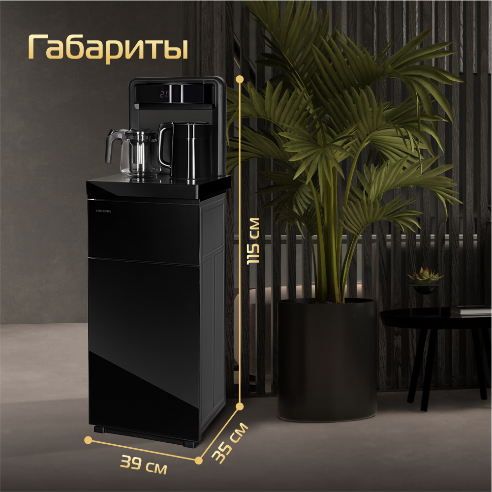Кулер для воды HIBERG UF 95 B напольный, электронное охлаждение, сенсорное управление, цвет черное стекло