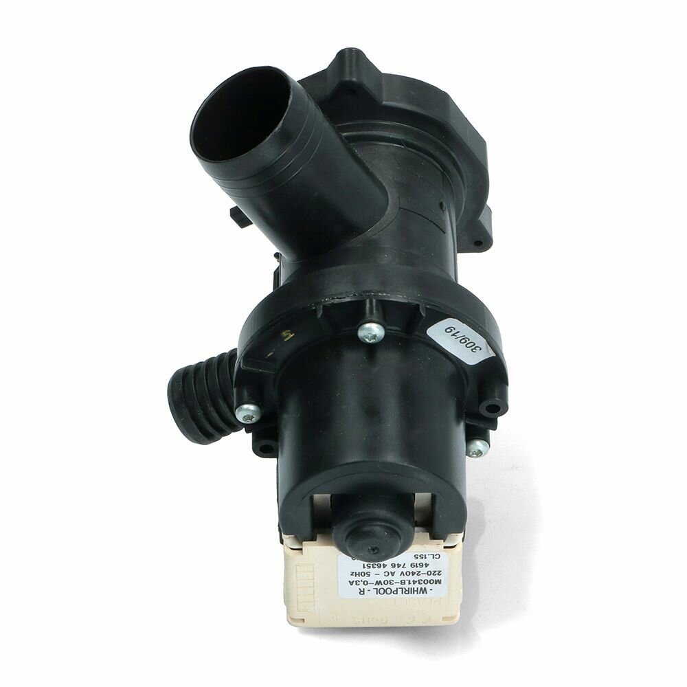 Насос сливной для стиральной машины Whirlpool в сборе 481010584942, C00310976 - 30Вт, подключение - клеммы вперед. интересное: