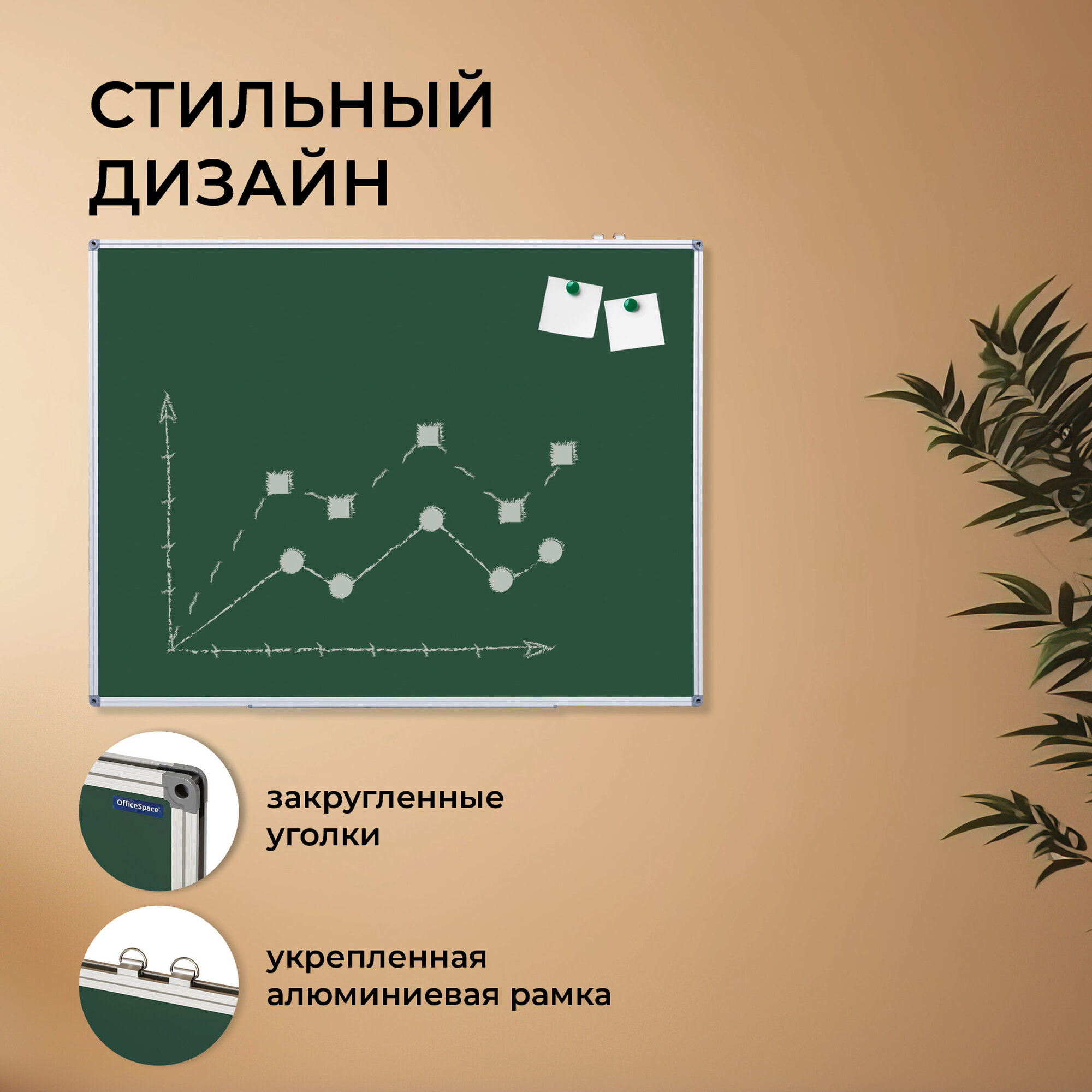 Меловая доска OfficeSpace, на стену, для заметок, 90х120 см с полочкой / доска для рисования маркером