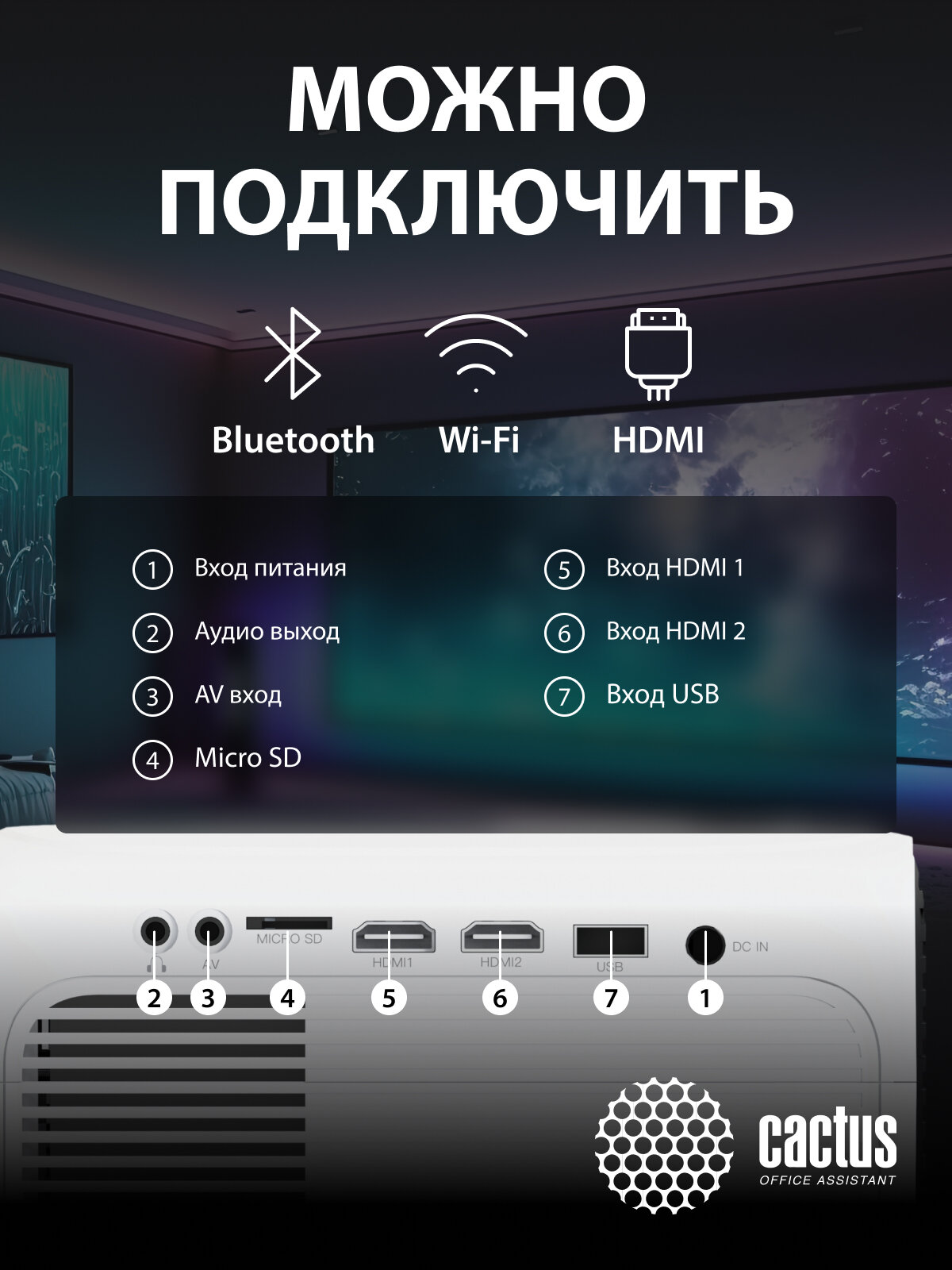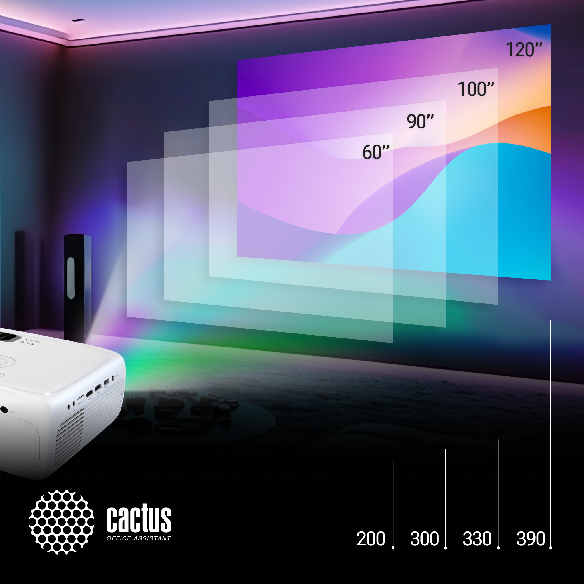 Проектор Cactus CS-PRM.07WT.Full HD LCD 3200Lm LS 320Lm ANSI 1500:1 (30000час) 1xUSB typeA 3xHDMI 1. интересное: