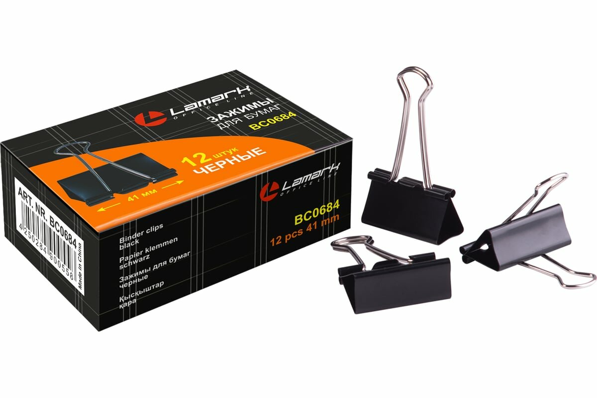 Lamark Зажимы для бумаг черные 41мм 12шт упак. 12 упак BC0684 интересное: